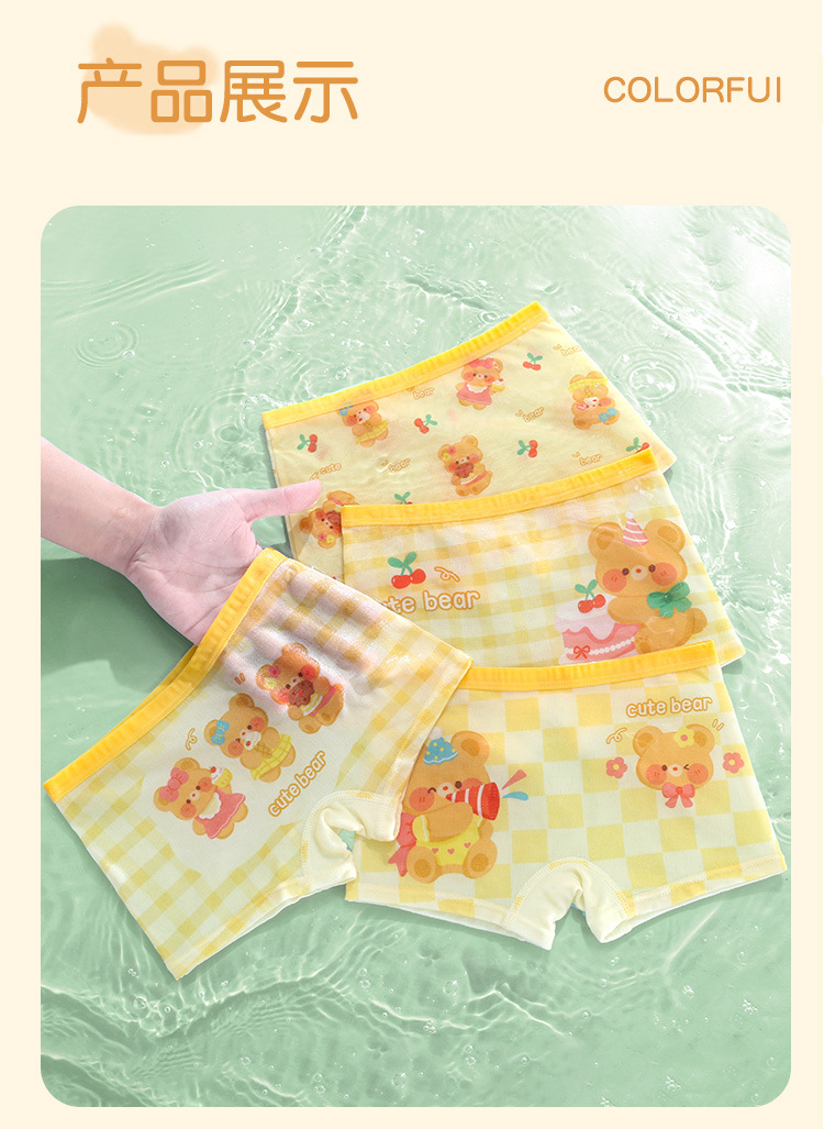 テイン熊子供用パンツ天然カラーコットン無染色女児パンツ7a級抗菌女の子ボクサーパンツ4角ズボン