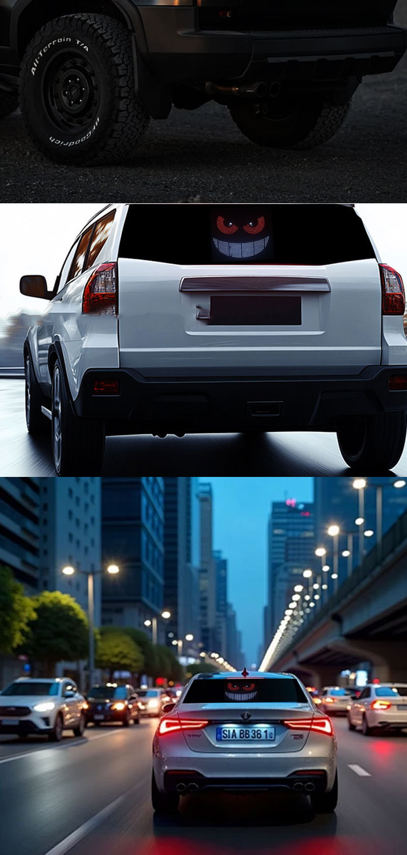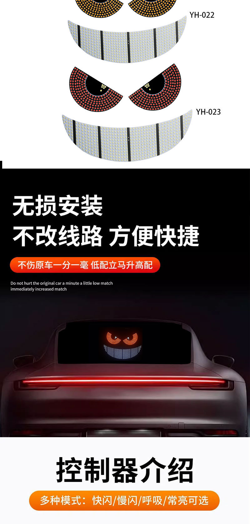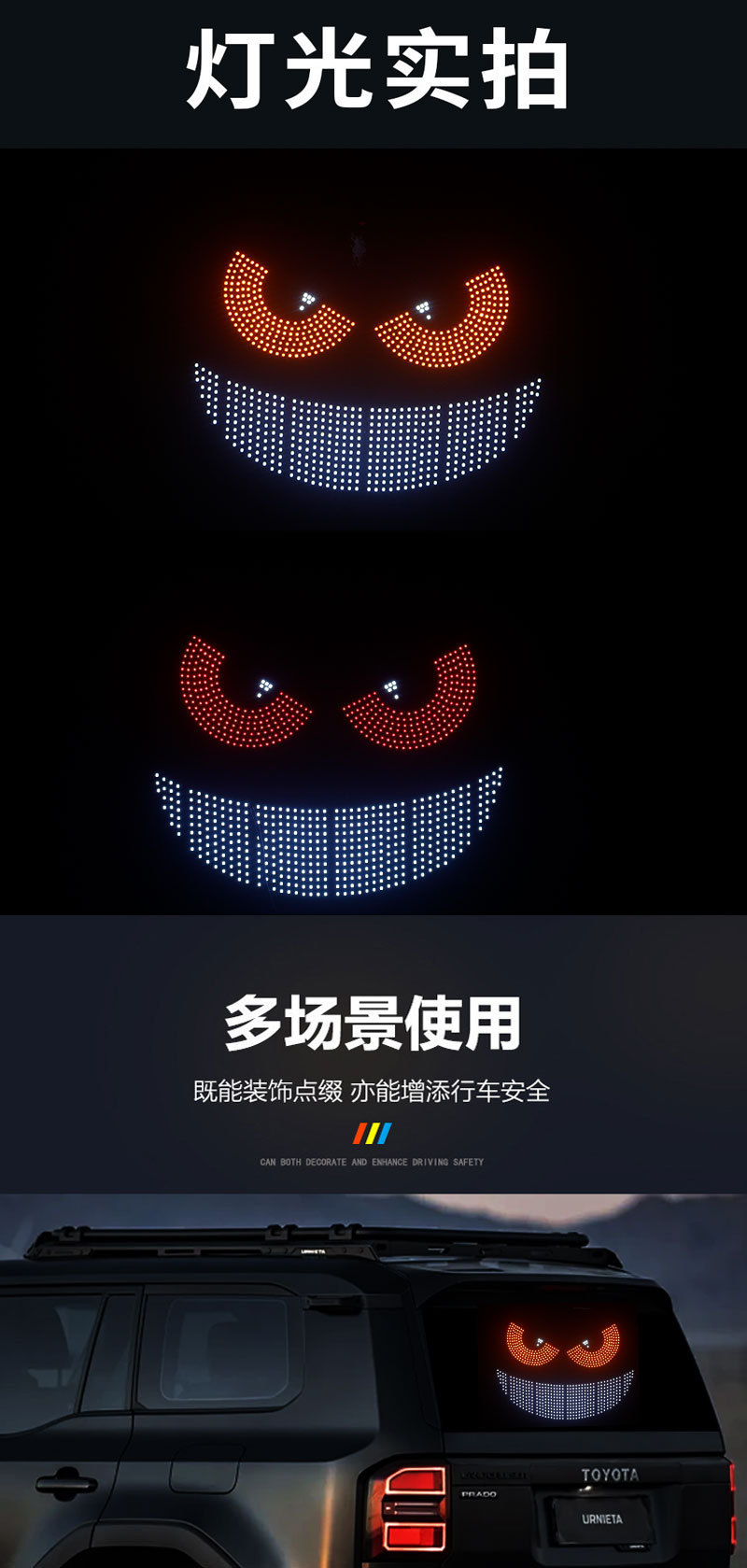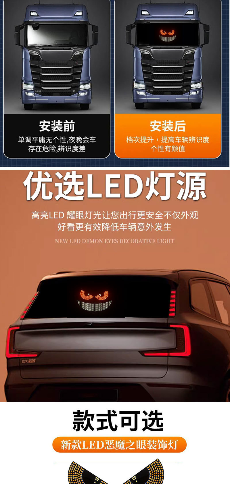 クロスボーダーusb車載ダイナミック悪魔の目ライト車はLEDディスプレイトラック車の前後のガラスランプを貼っています。