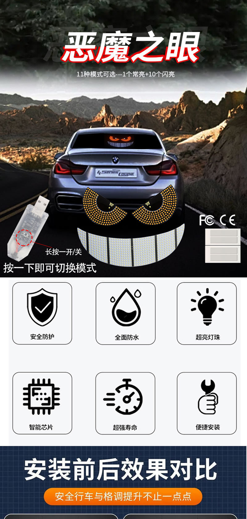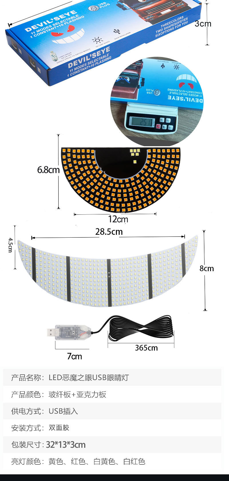 新製品デビルアイ車 LED 装飾ライト修正カジランビッグアイライトパーソナライズされた装飾 11 モード USB