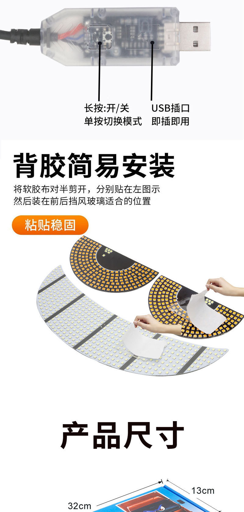自動車超薄型LED導光条日行灯起動流水二色帯回転涙目灯装飾シリカゲルライトバー