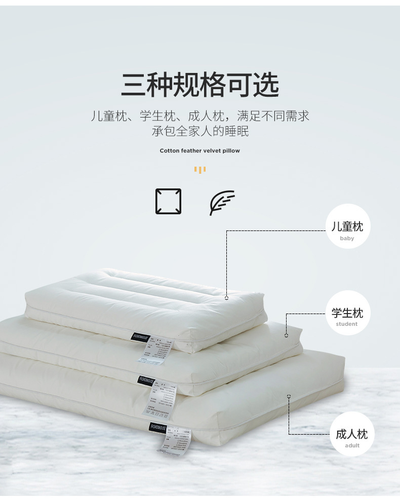 A类母婴抑菌儿童枕头低枕家用护颈椎薄枕助睡眠枕芯纯棉学生枕头