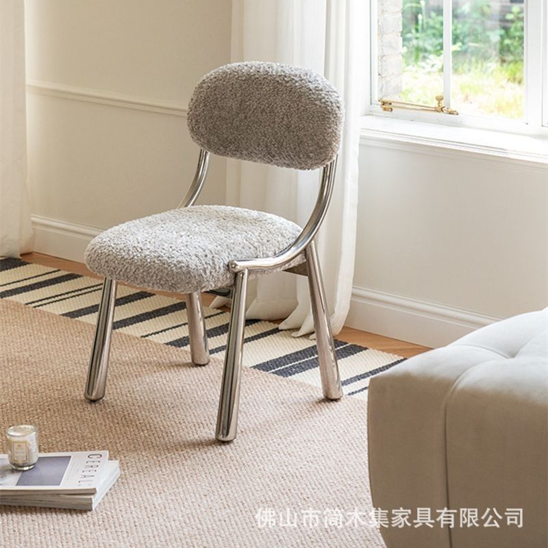 法式复古化妆椅子网红梳妆台凳子高级感衣帽间羊羔绒化妆凳肖恩椅