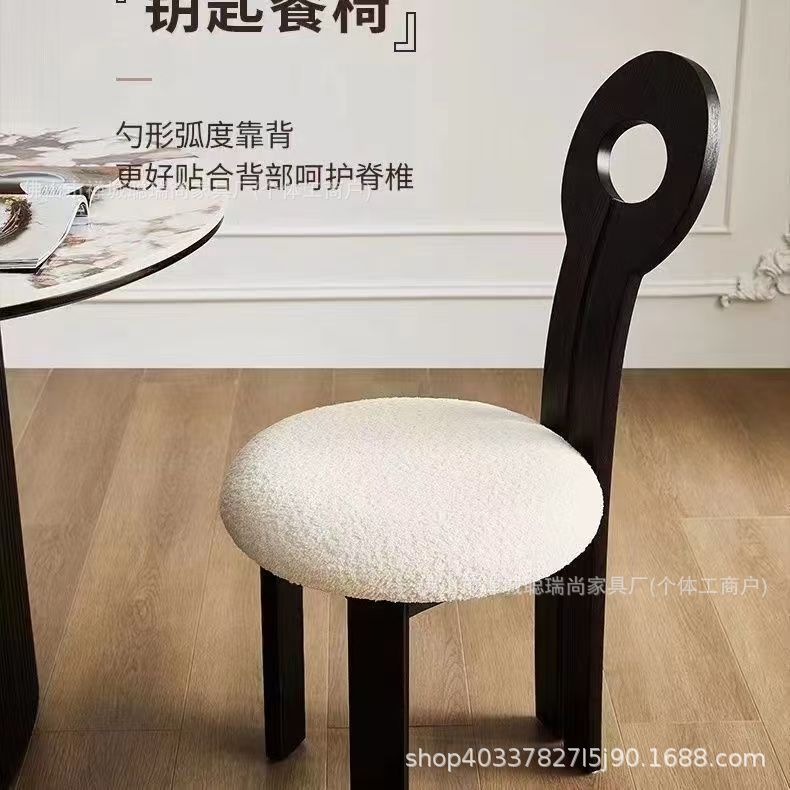 聪瑞尚复古实木中古诧寂风家化妆椅靠背椅子北欧简约钥匙椅人鱼椅