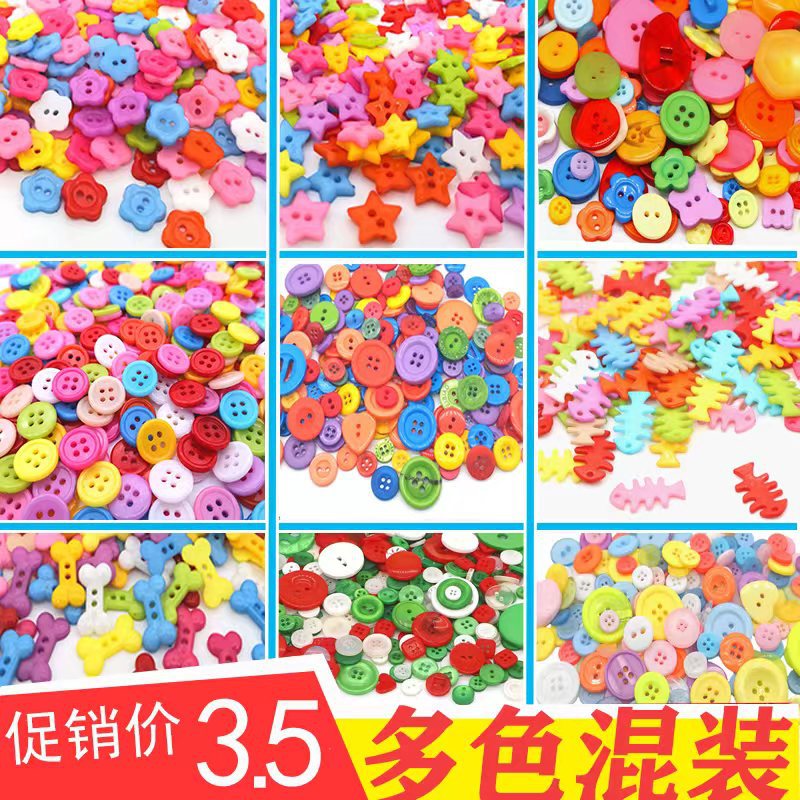 カラー混合ボタンDIY手作りボタン花材料バッグ幼稚園貼り付け絵子供プラスチックボタン円形