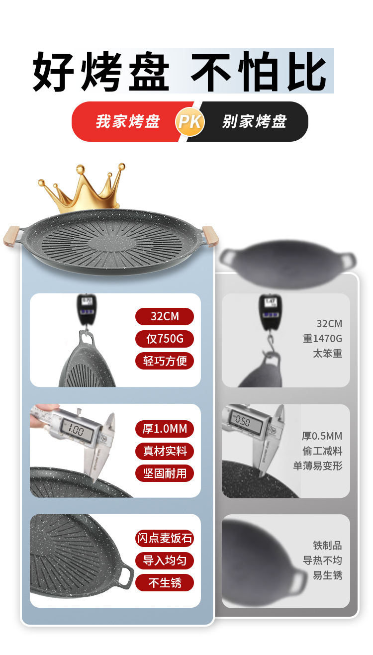 焼き皿屋外カード式オーブン焼肉皿韓国式鉄板焼き鋳鉄焼き皿粘着しない電磁ストーブ家庭用
