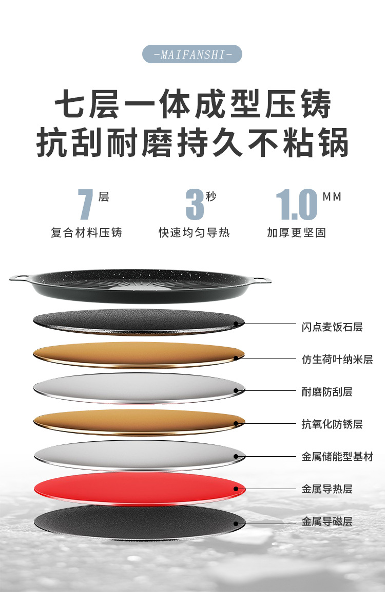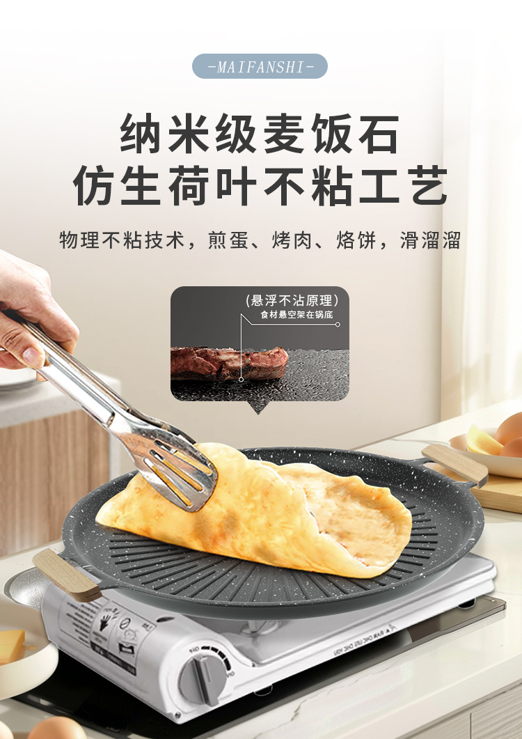 非粘着電磁炉韓国式麦飯石カード式炉屋外家庭用ソーセージ焼き魚焼肉グリーン焼き皿
