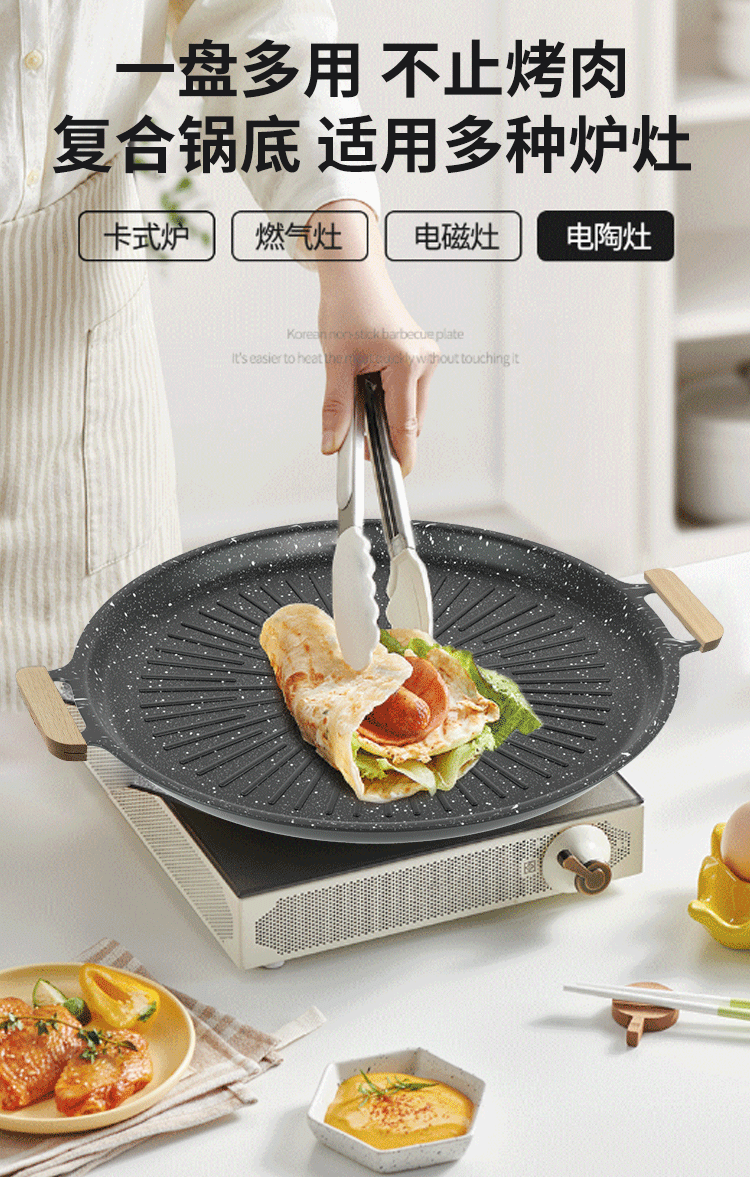 メーカー麦飯石焼き皿カード式炉電磁炉通用韓国式焼肉皿焼き鉄板焼き屋外キャンプ