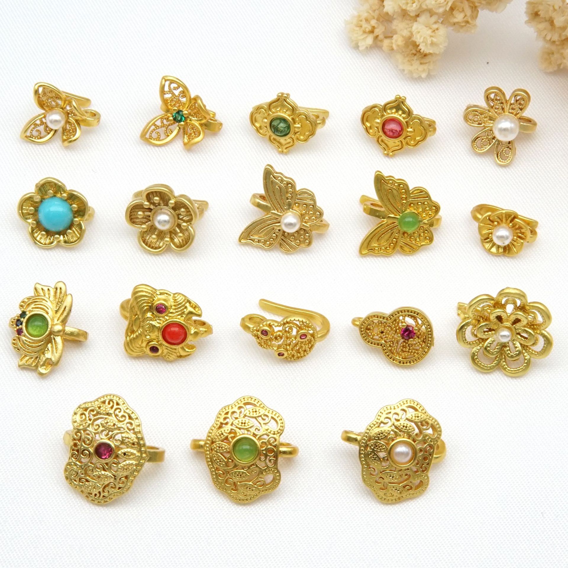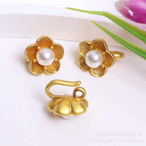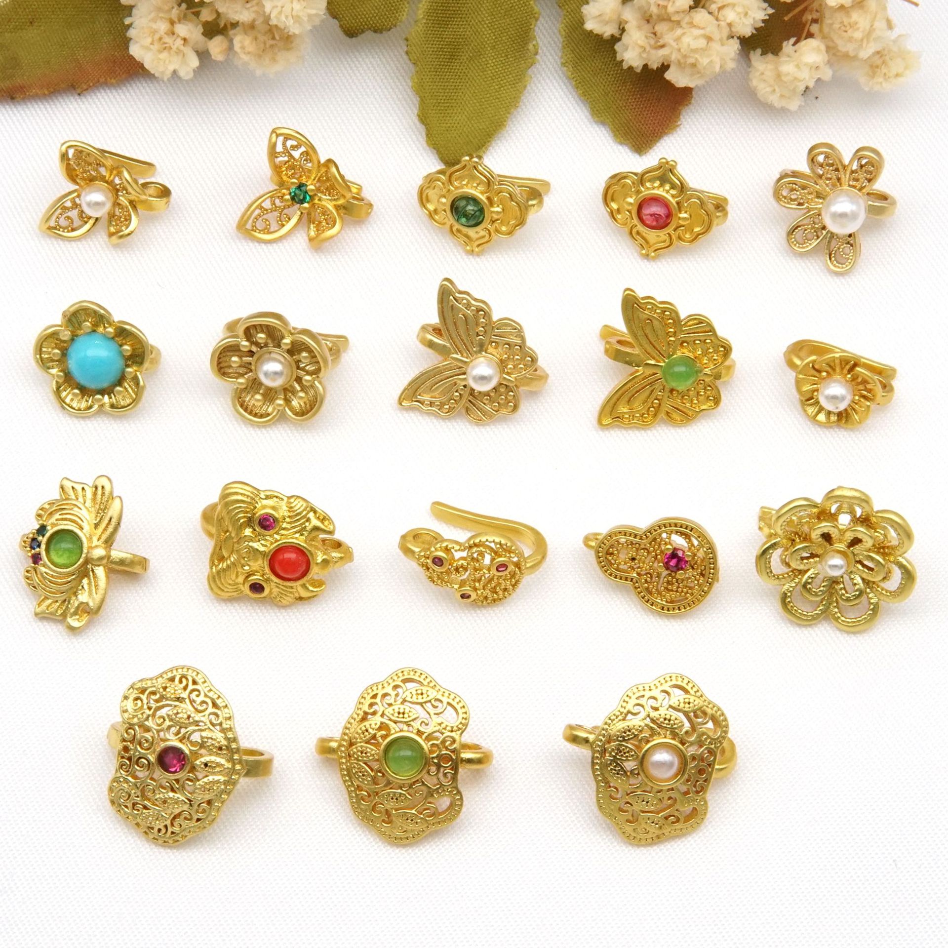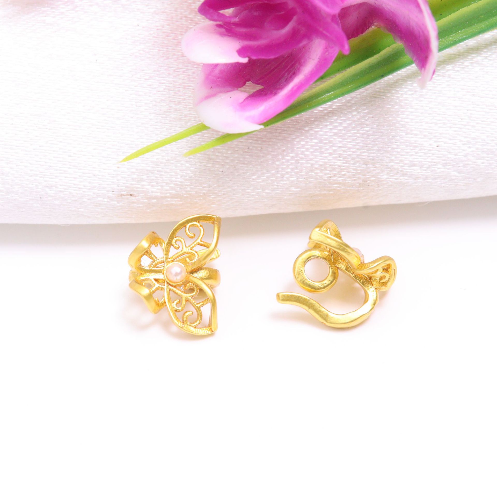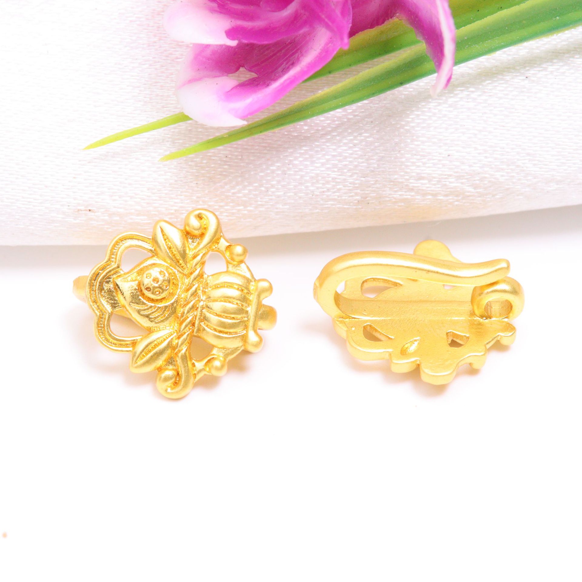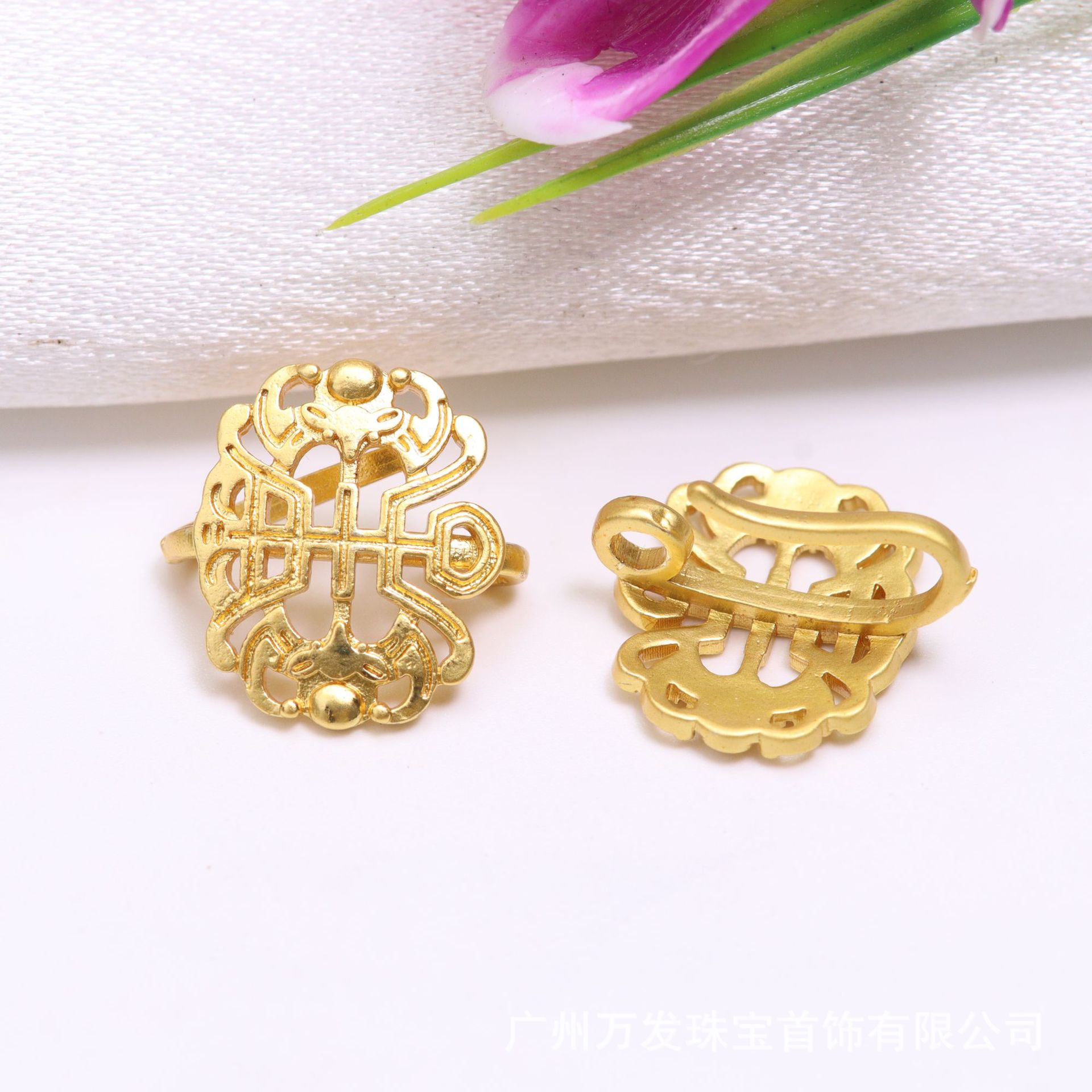 保色古法金蝴蝶压襟扣手绳扣头 DIY配件铜镀金扣镶嵌珍珠莲花扣饰