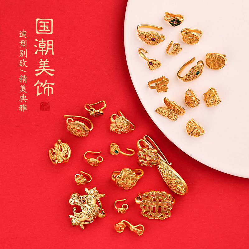保色铜镀古法金蝴蝶金蟾喜鹊收尾扣 旗袍压襟挂饰扣头diy饰品配件