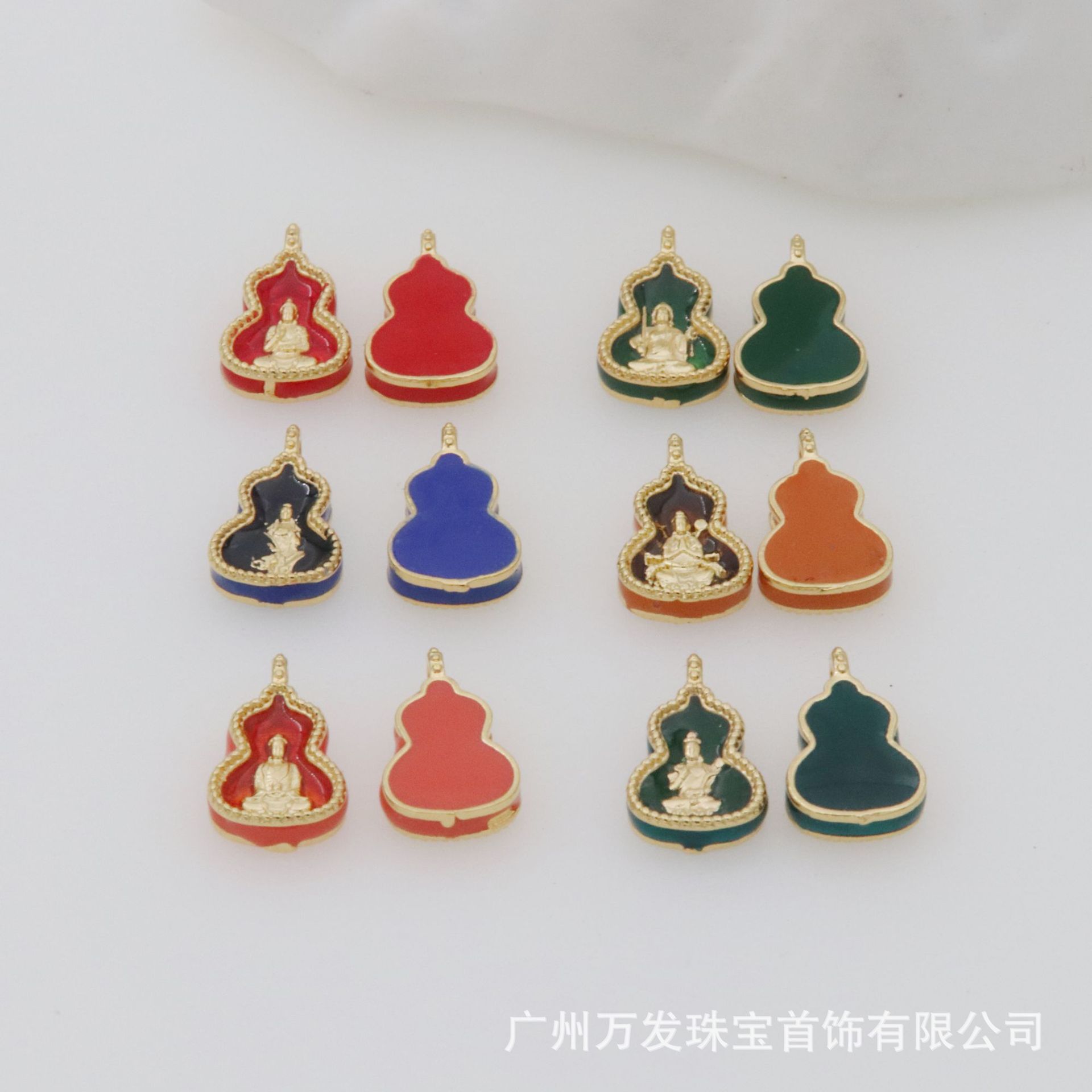 古法金6大守護神小ペンダントアクセサリー銅メッキ24k真金アクセサリーエナメル緑度母象神ペンダント