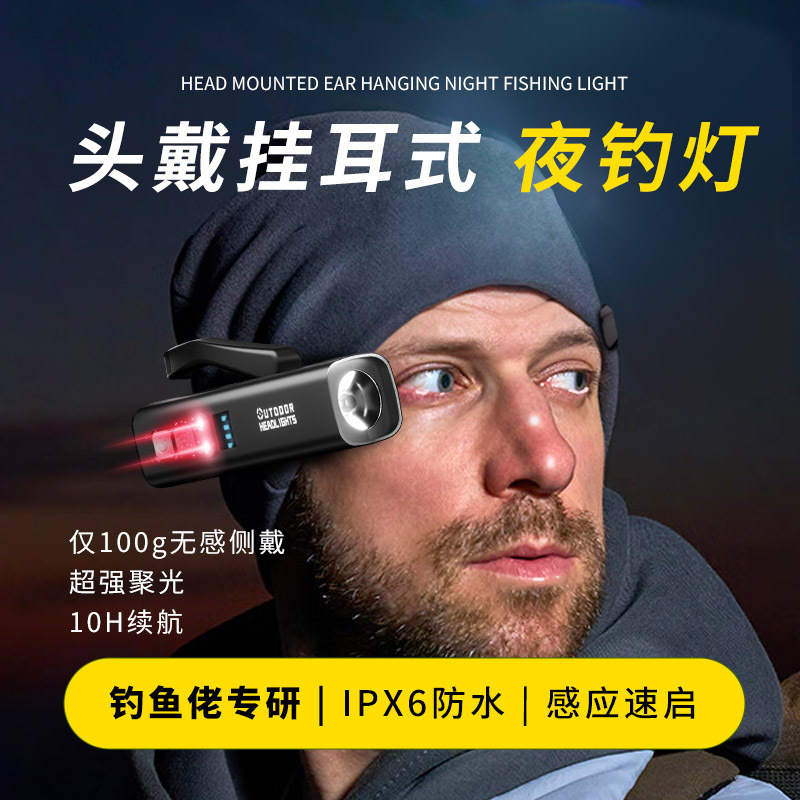 ヘッドライト2025新型強光超亮屋外夜釣り専用耳頭戴式照明灯登山運動夜走