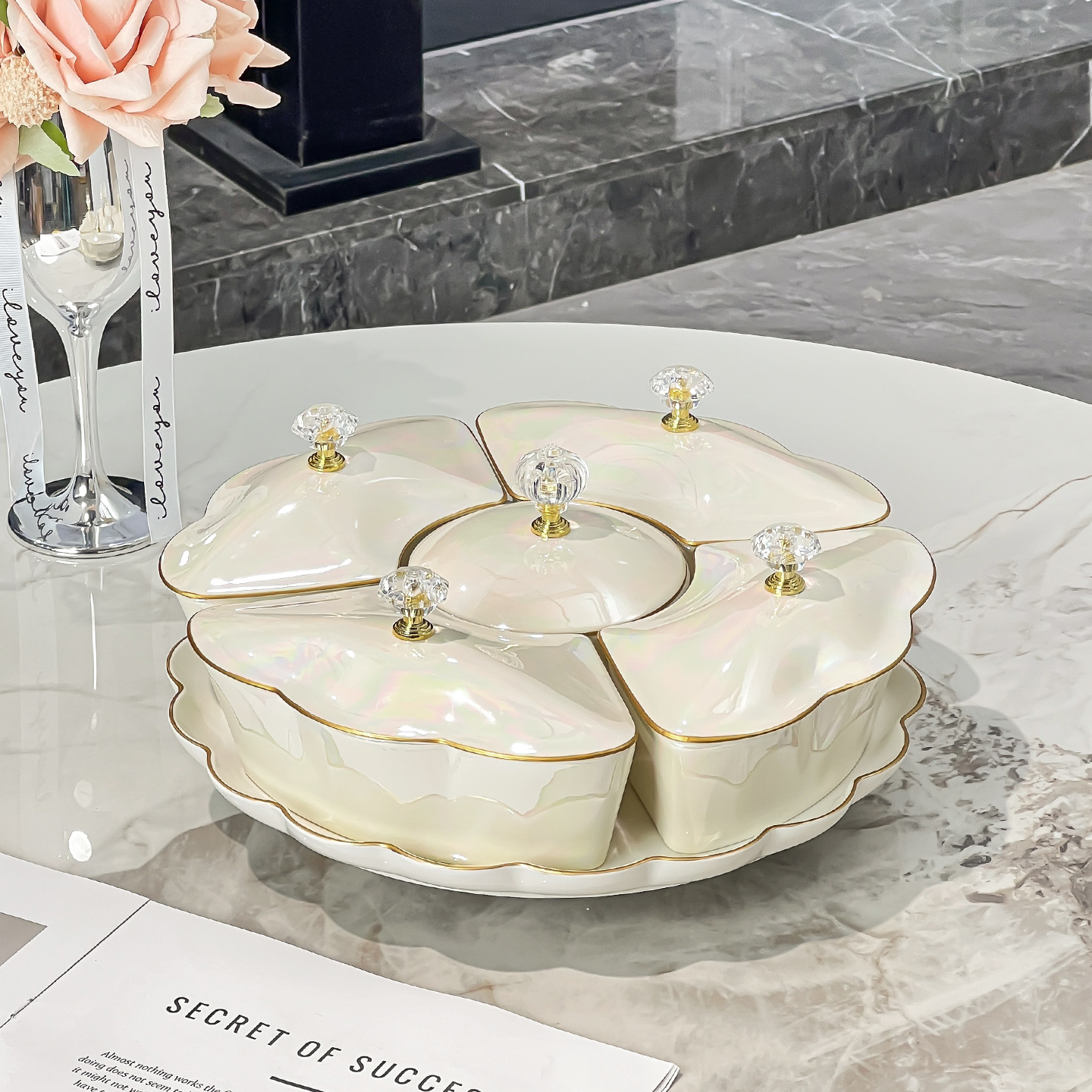高颜值陶瓷轻奢密封坚果零食糖果盘过年干果盘家用客厅茶几水果盘