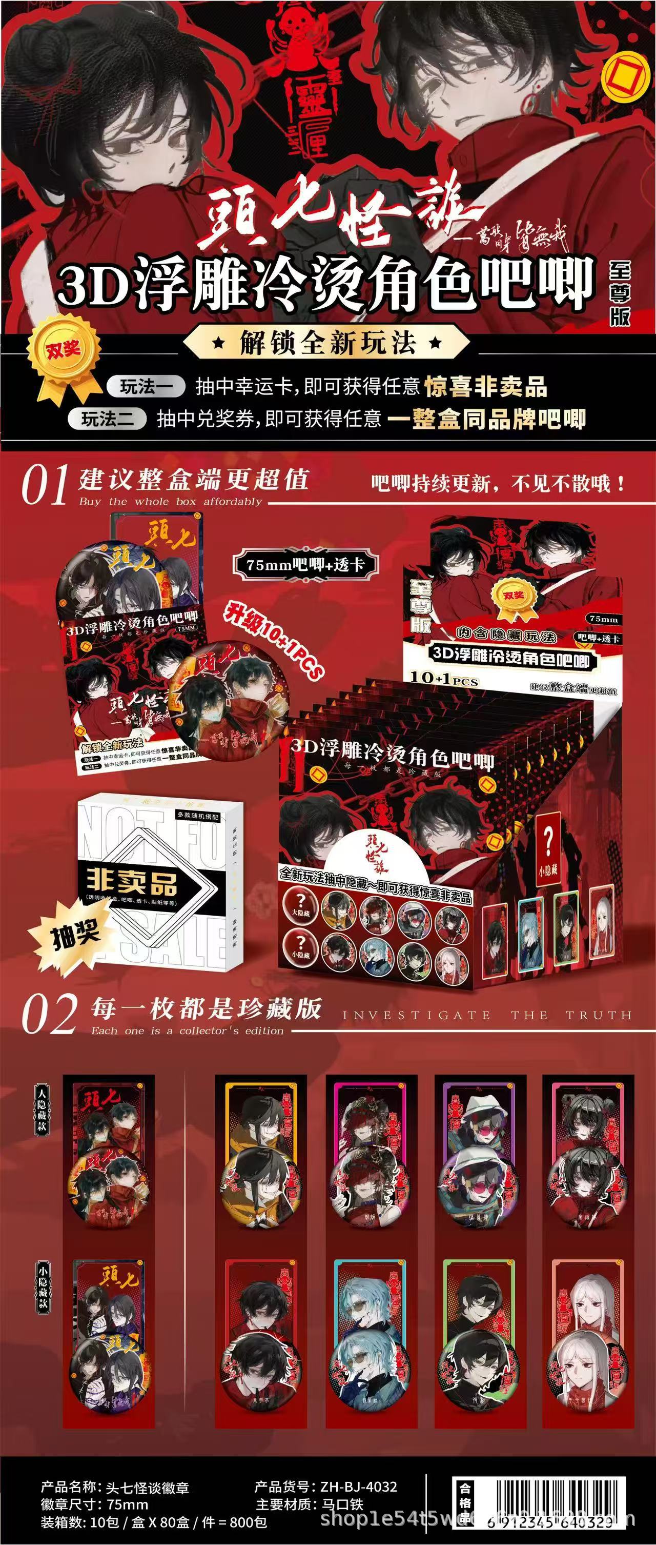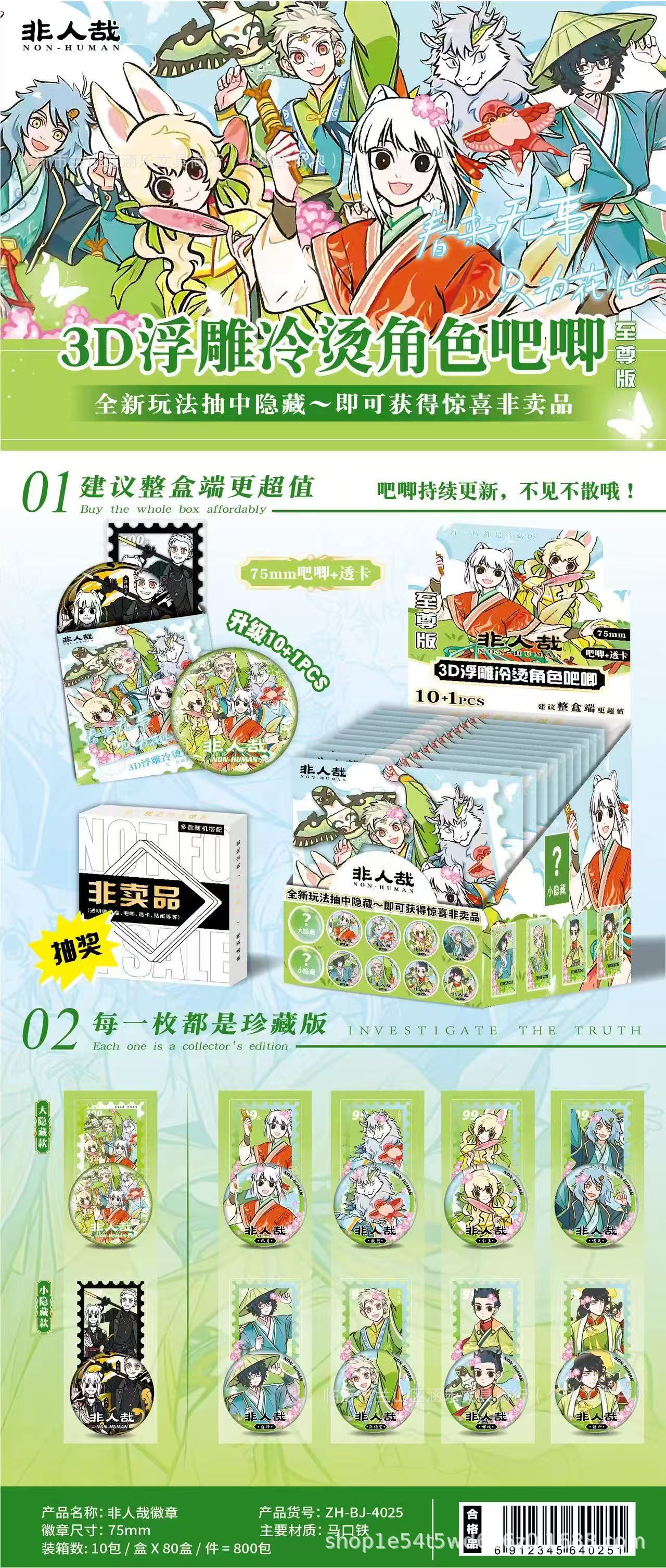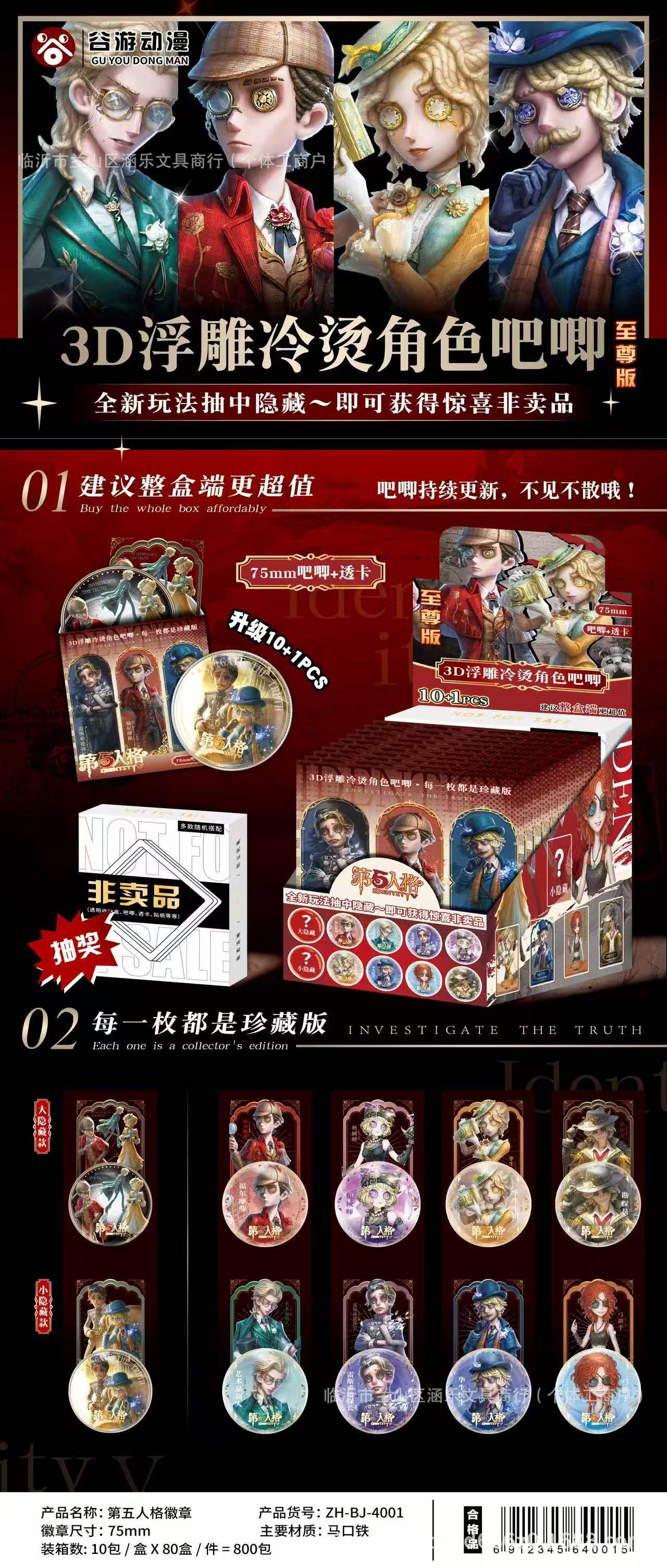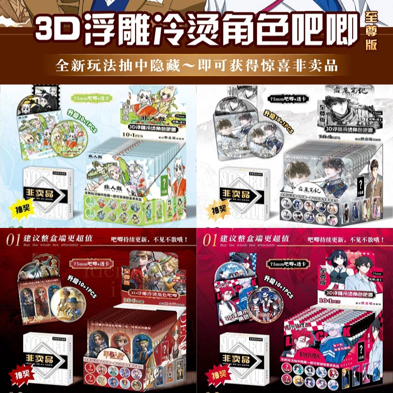 吧唧盲盒四弹第五人格非人哉75MM徽章透卡套装浮雕冷烫吧唧展示套