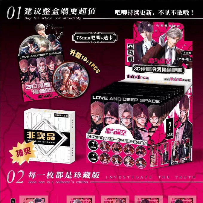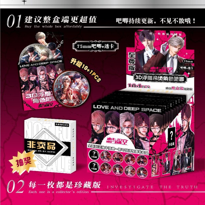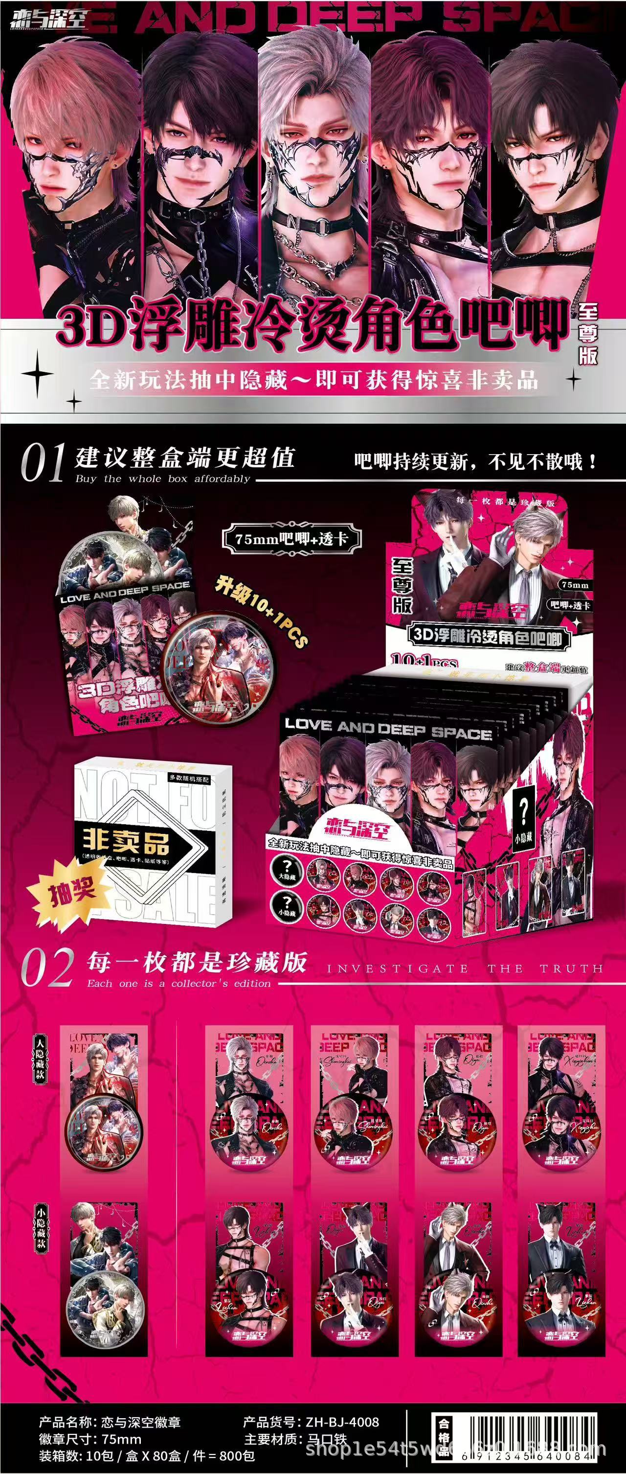 恋と深空周辺グッズ ダブルフラッシュバッジ ブラインドボックス エンボス加工 ダブルフラッシュバッジ 第4弾 75mmバッジディスプレイボックス