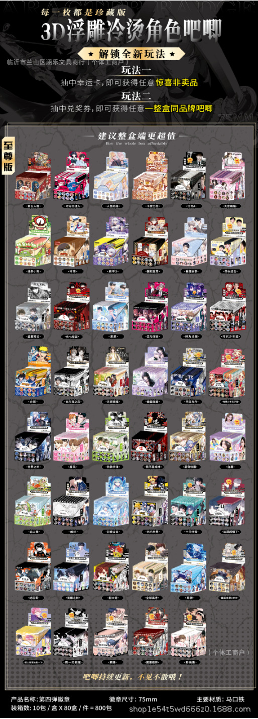 新作アニメ周辺グッズ 3D浮き出しコールドスタンピングキャラクターバッジ 75MM ダブルフラッシュ 第4弾 販売中 卸売 爆発的人気商品