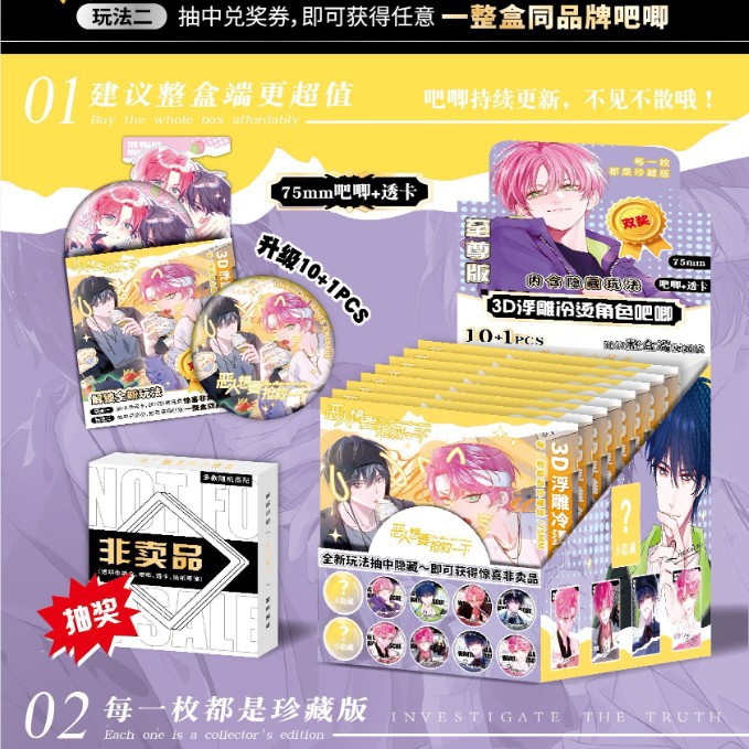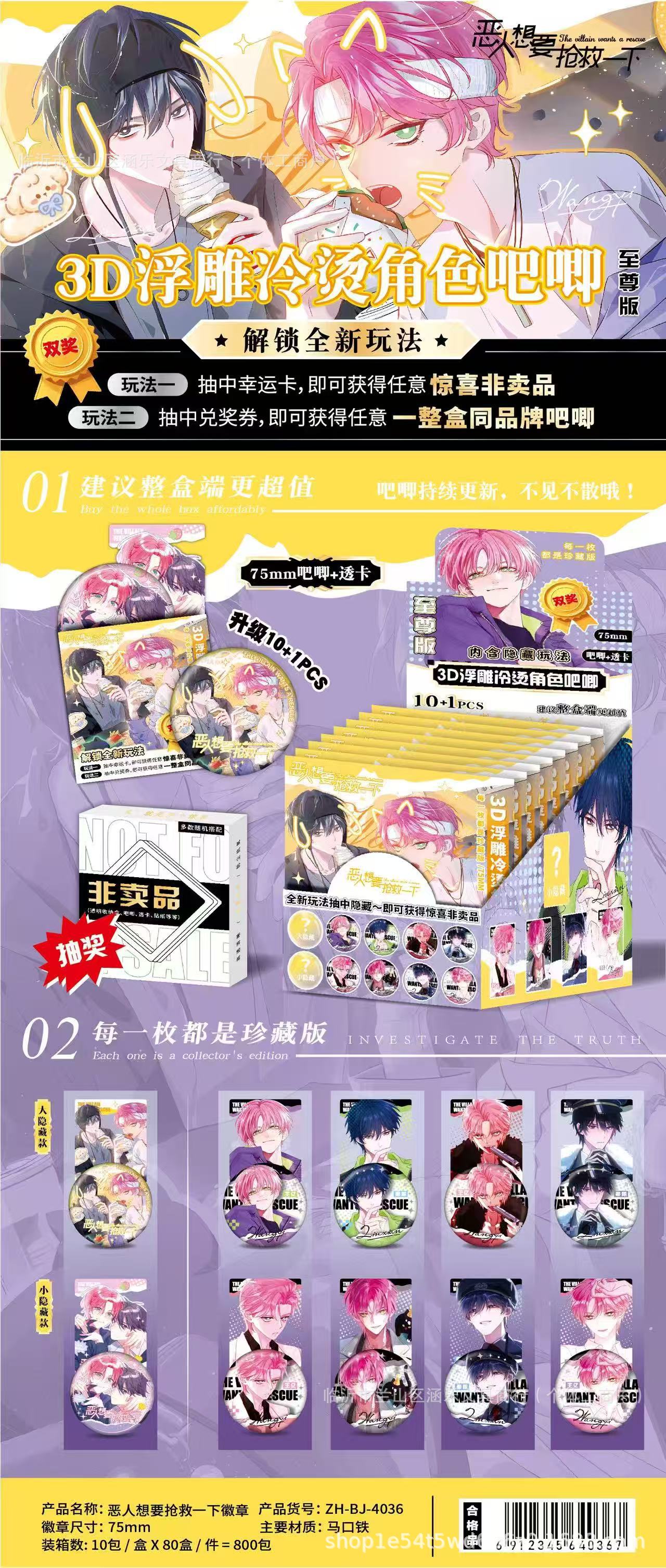 悪人がブラインドボックスバッジの透明アクリルディスプレイボックスセット(四弾浮き出し冷間圧着バッジ)を救いたいと願っています