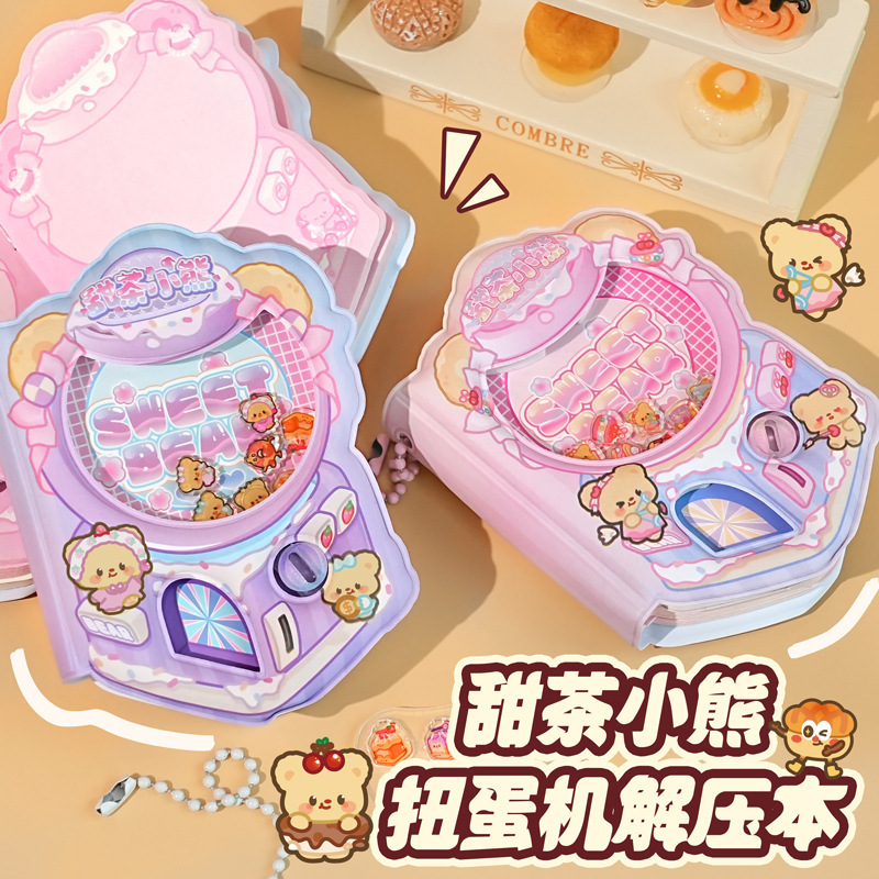 かわいいスイートティーベアガシャポンマシン、減圧本、特殊な形の楽しいポケットブック、フルカラーのインナーページ、ノートブック