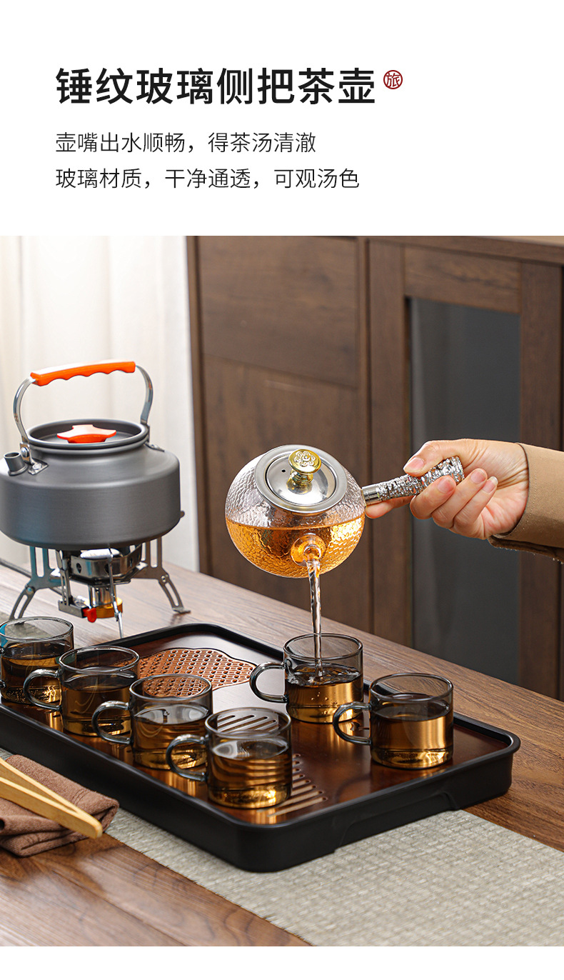 車載屋外ガラス茶器キャンプ囲炉裏煮茶携帯旅行茶器セット湯たんぽセット