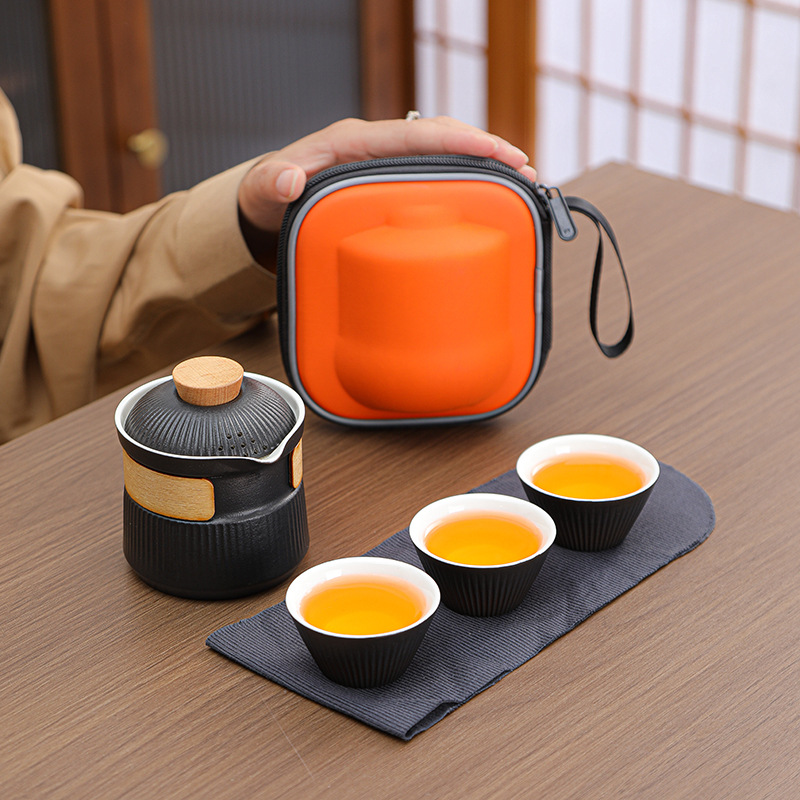 粗陶旅行茶器セットは、インスタントカップの携帯茶器1ポット4杯の携帯ティーポットのプレゼントです