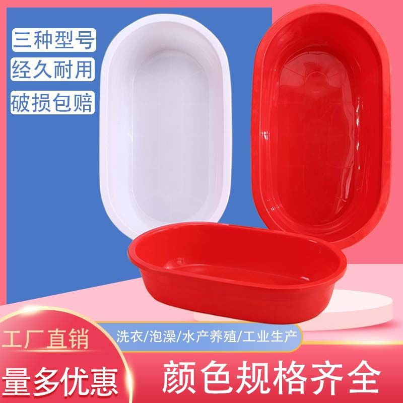 プラスチック製の長い洗面器、大きな厚みのある長方形の洗面器、赤い丸い洗面器、大人と子供用の家庭用浴槽