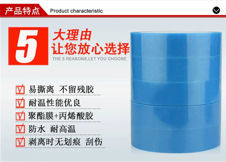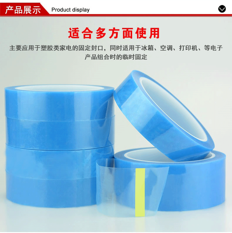 Petブルー冷蔵庫テープ電気部品固定不残糊片面テープ無痕強粘冷蔵庫テープ