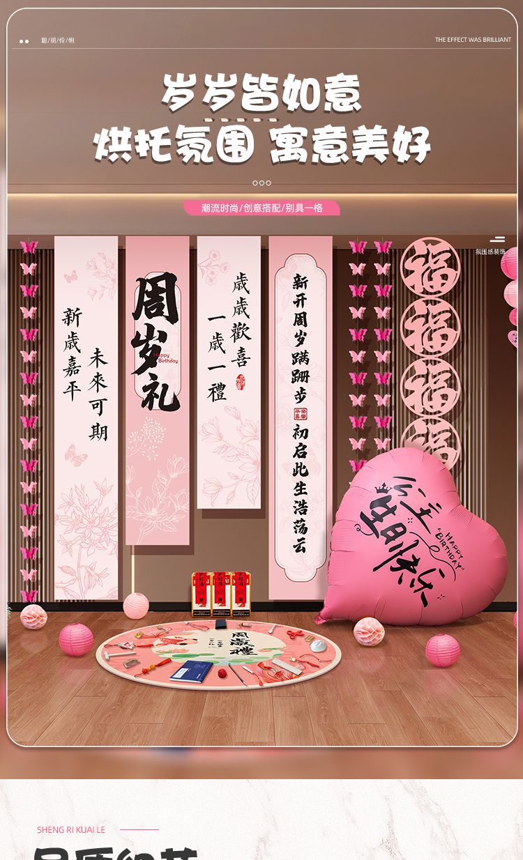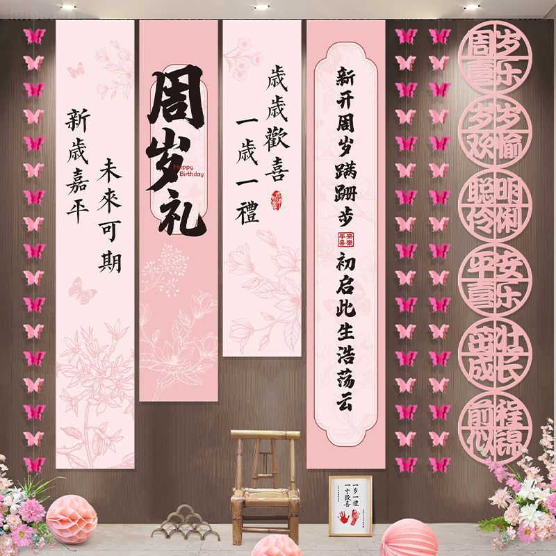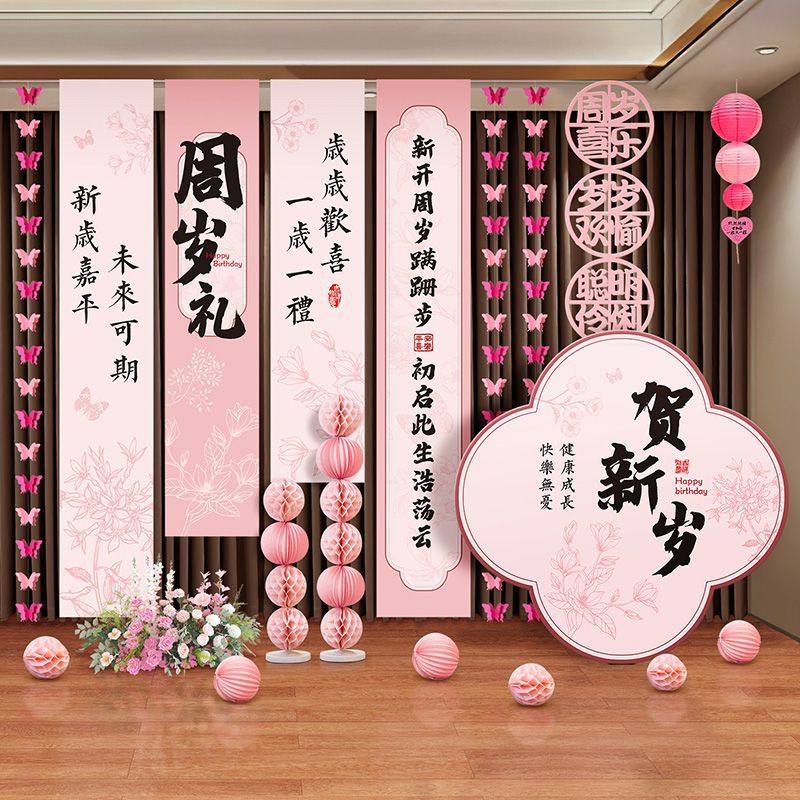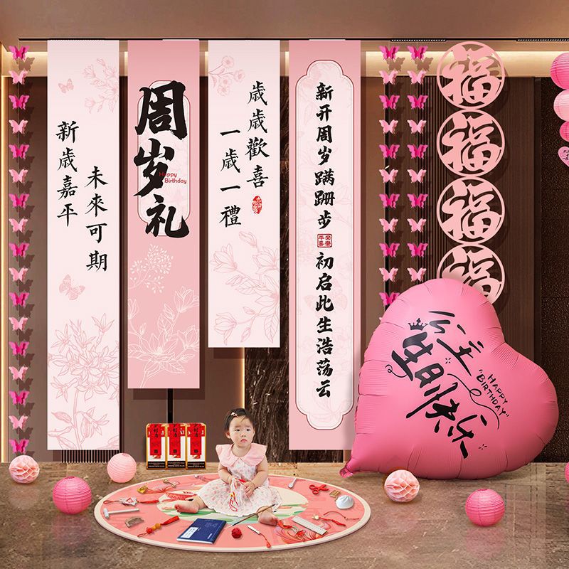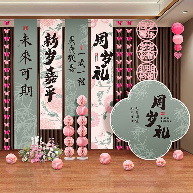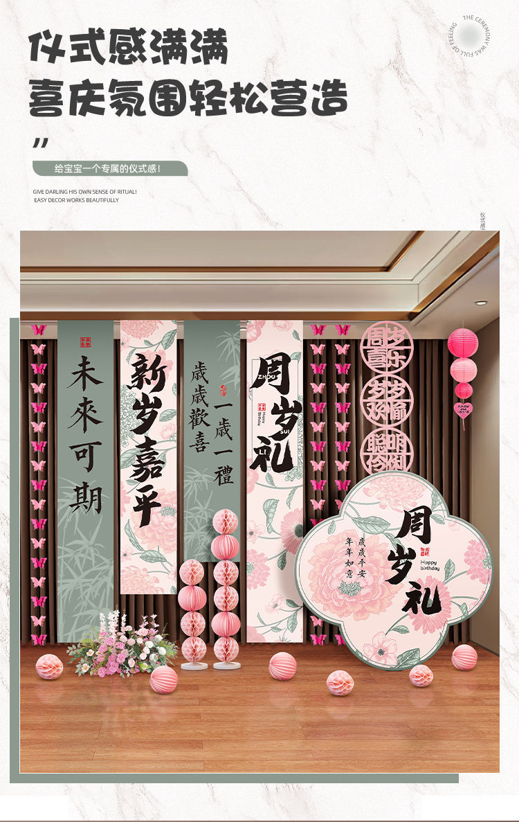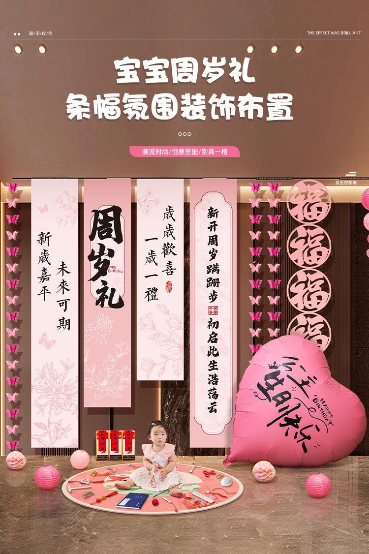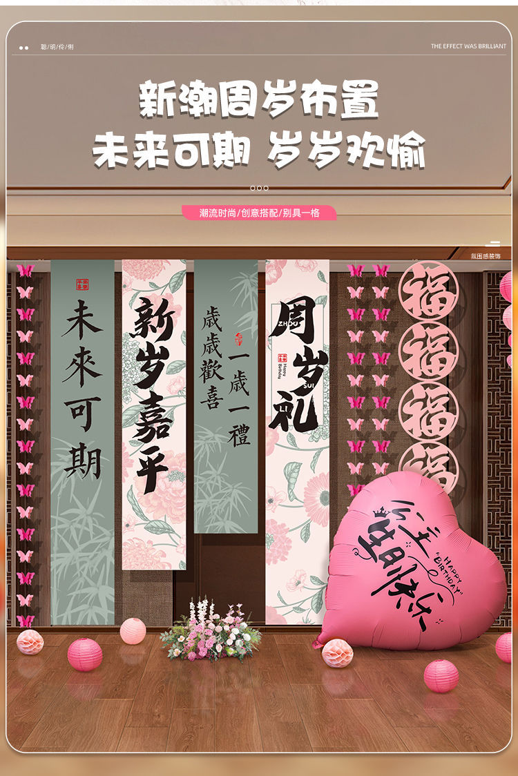 1歳の赤ちゃんの高級誕生日シーンの装飾背景男の子と女の子の誕生日の小道具バナー吊り布3