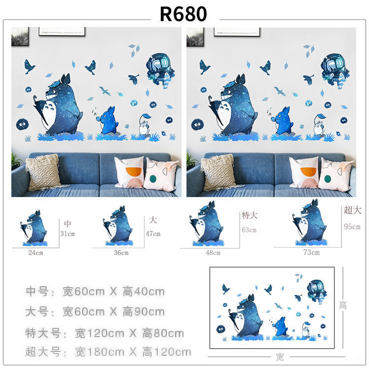 漫画の壁は宮崎駿アニメの竜猫の壁面の装飾のステッカーの子供の部屋の少女の創意の配置の寝富の雲を貼ります。