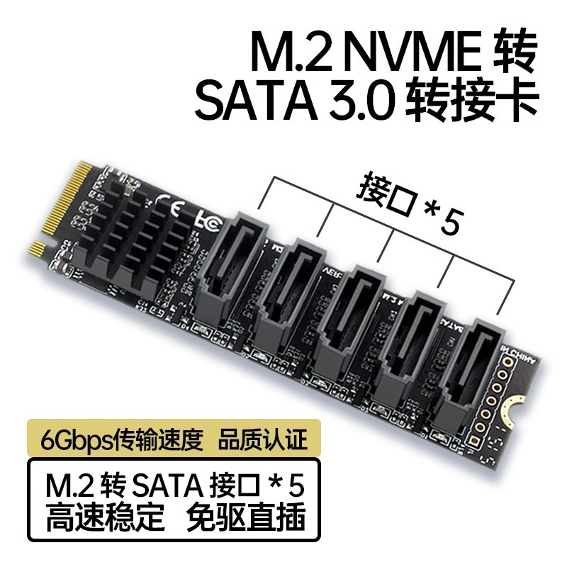 M.2回転5 SATA3.0拡張カードm 2 M-KEY NVME回転SATAアダプタNAS群暉ハードディスク拡張