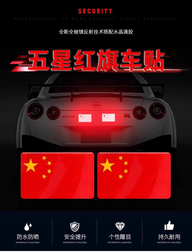 3D立体红旗车贴个性贴加厚滴胶反光国旗贴纸防水刮痕划痕遮挡遮盖