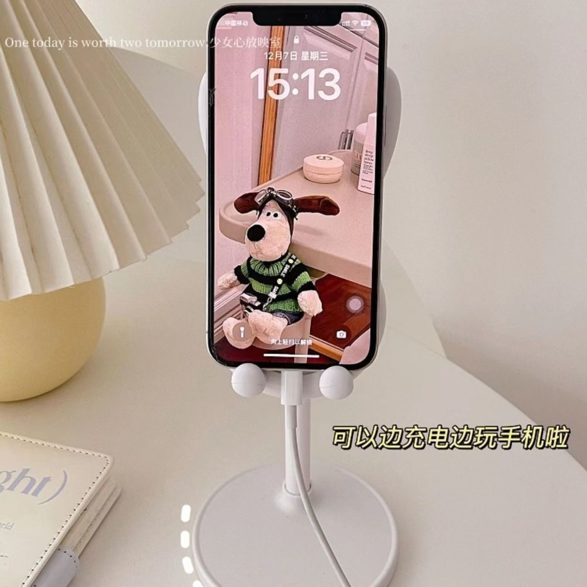 ウサギちゃんの携帯電話スタンドのデスクトップは、上に上がることができます。