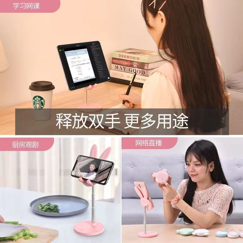 卸売漫画かわいいウサギデスクトップ携帯電話ホルダータブレットユニバーサル調節可能な伸縮式リフト学生怠惰な人