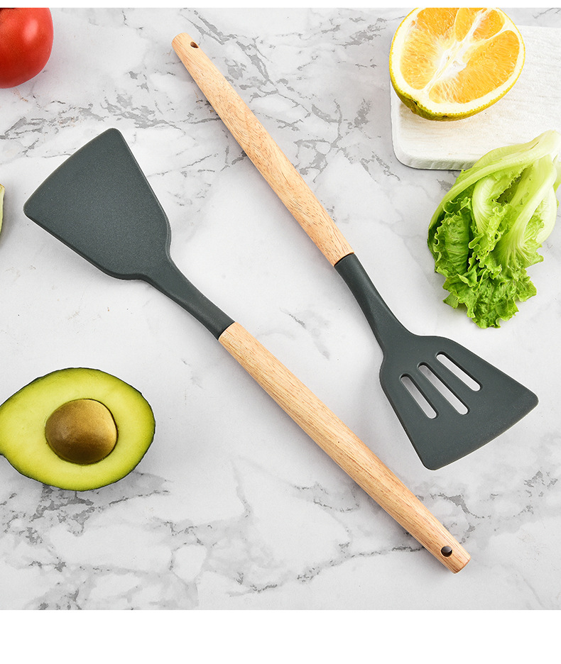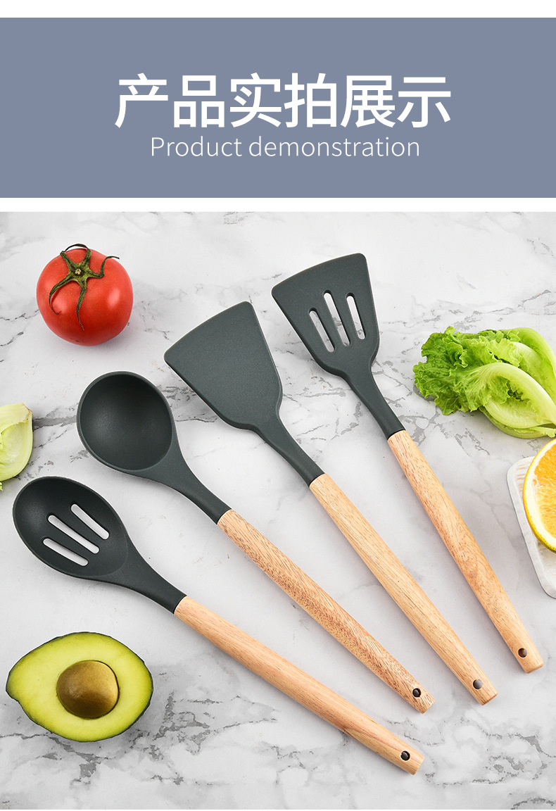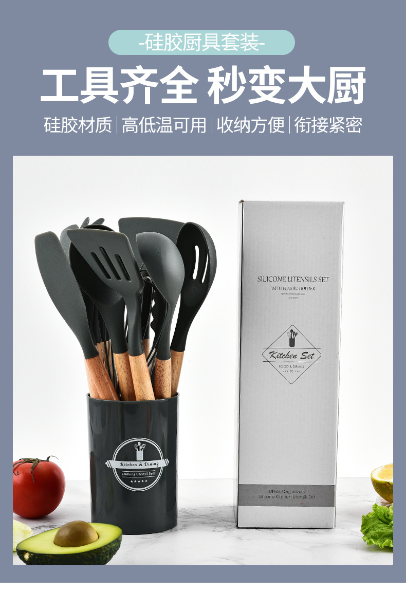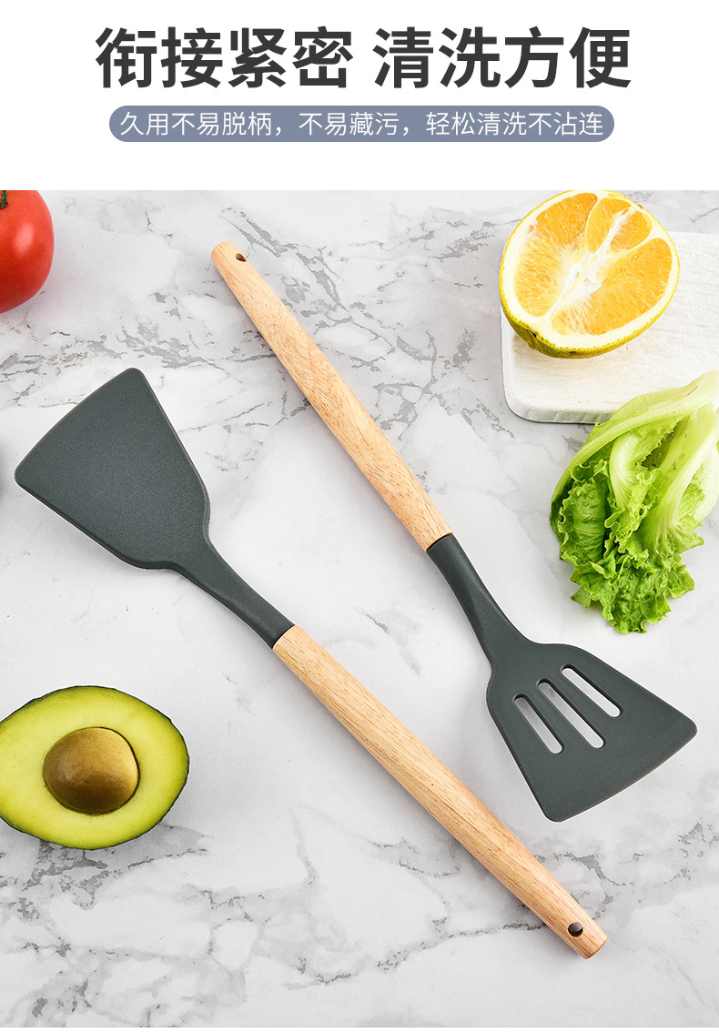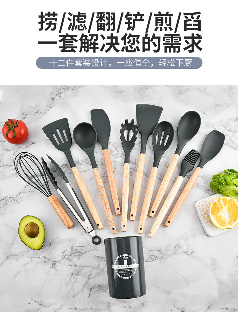 メーカー直販木柄シリカゲル調理器具12点セット耐高温多機能食品級スプーンシャベルシリカゲルセット調理器具