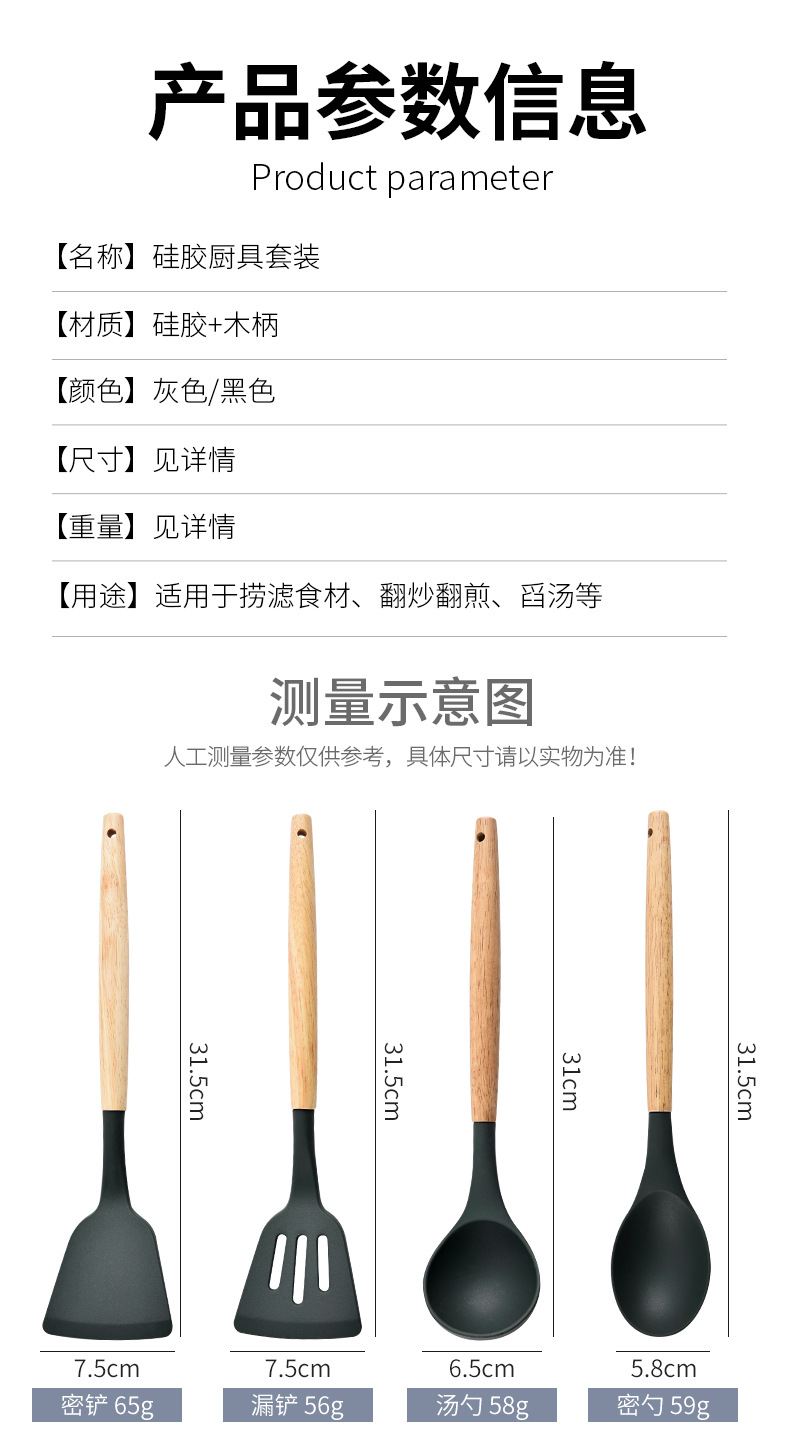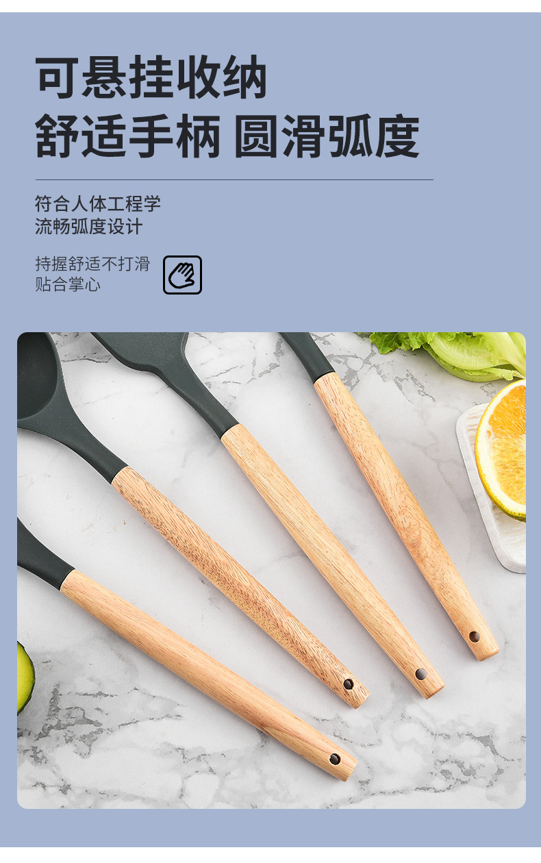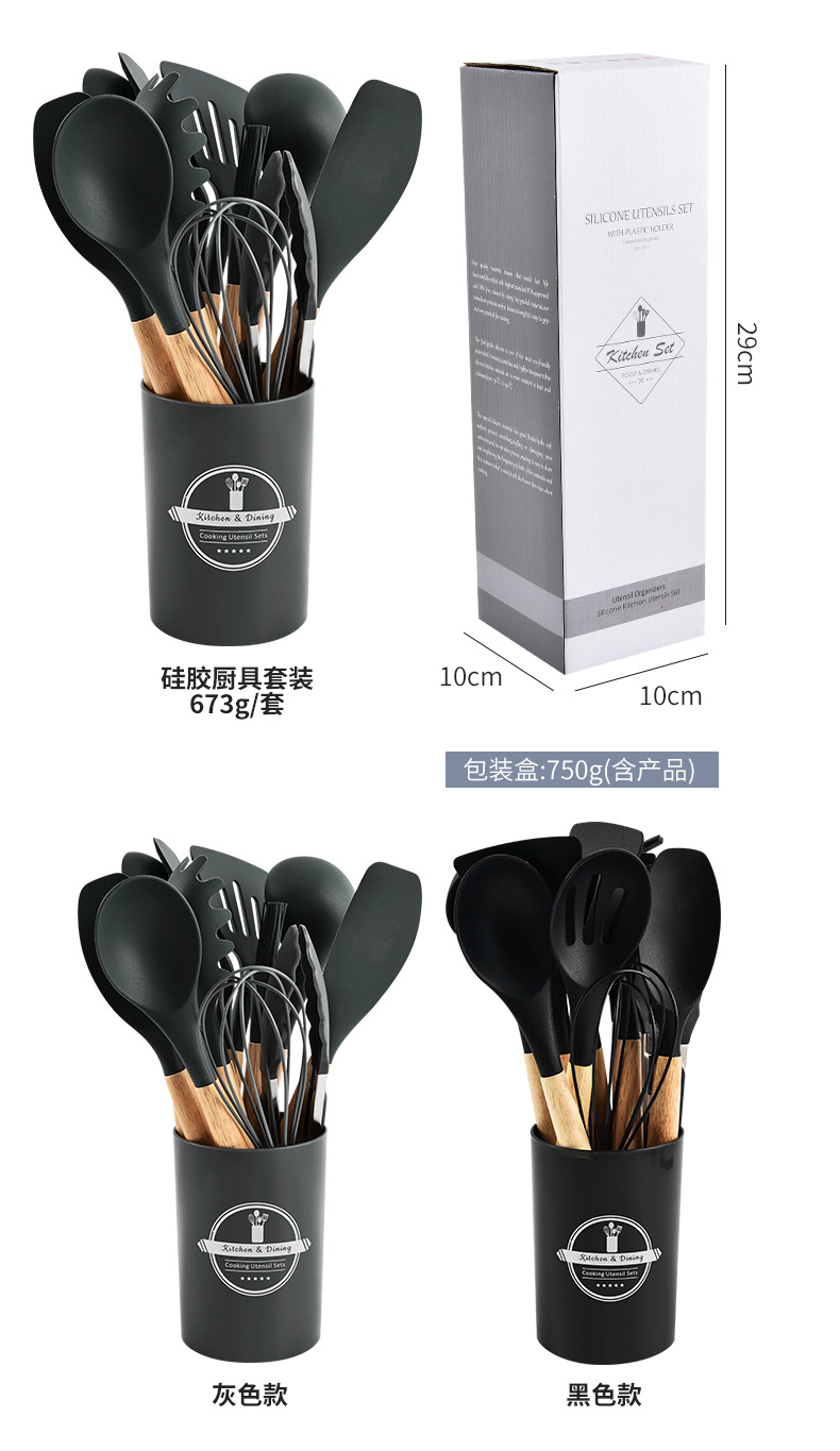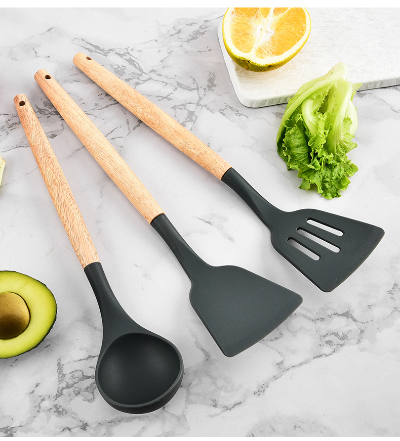 メーカー直販木柄シリカゲル調理器具12点セット耐高温多機能食品級スプーンシャベルシリカゲルセット調理器具