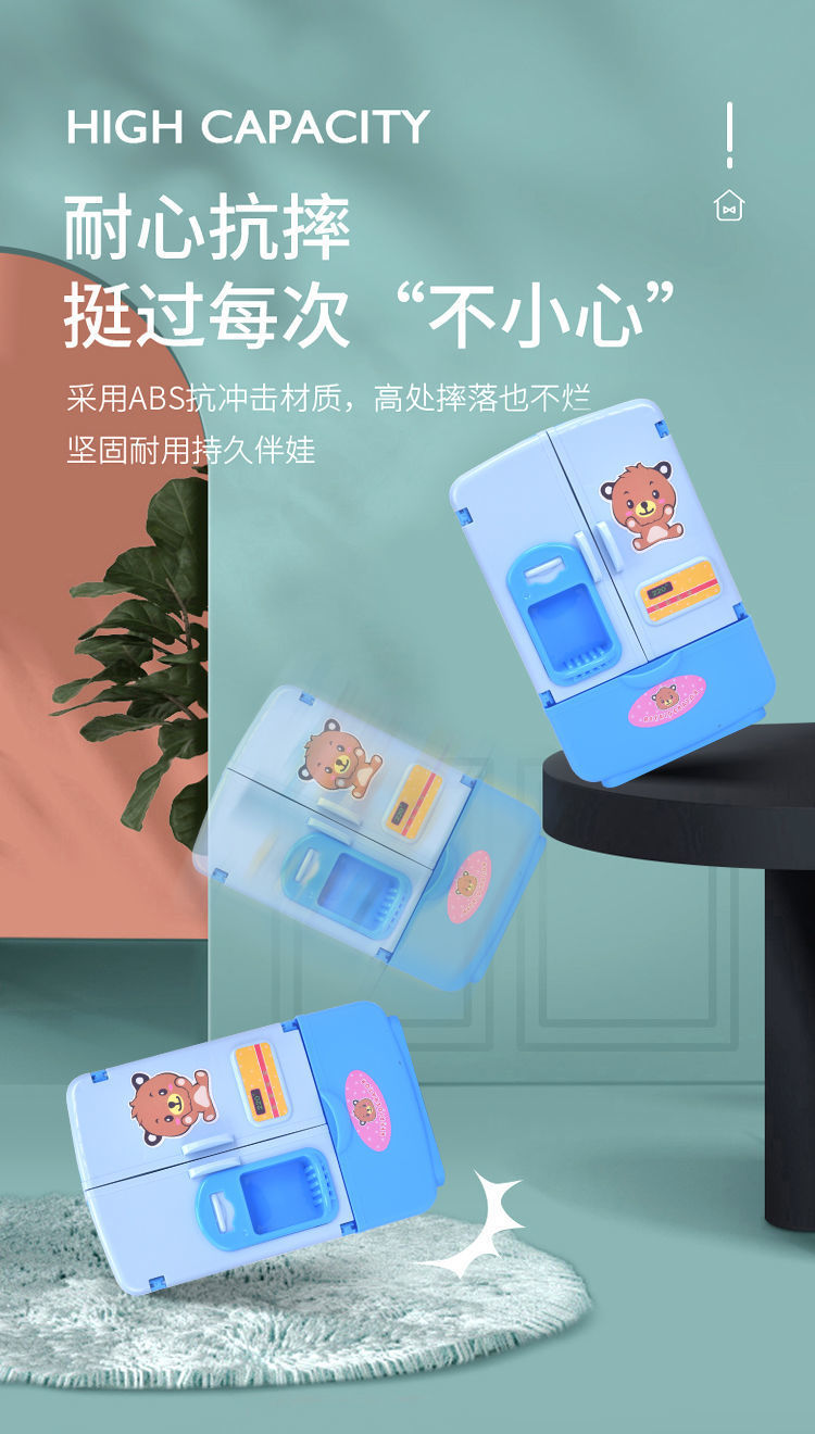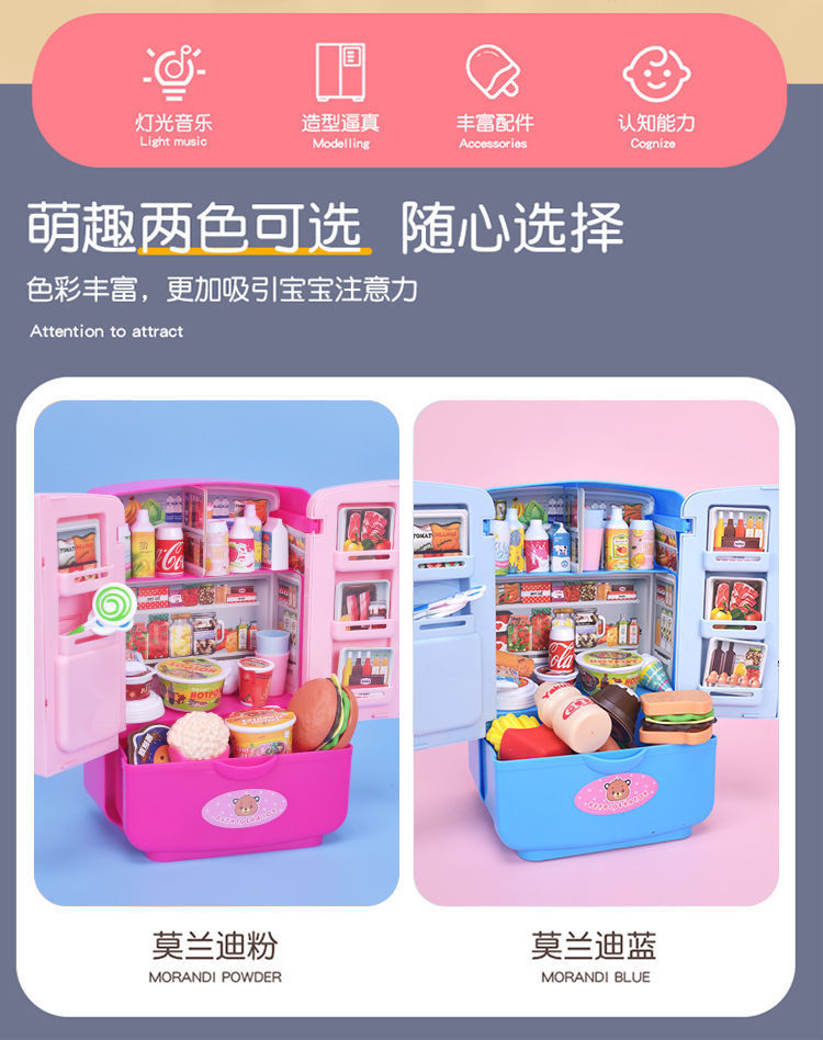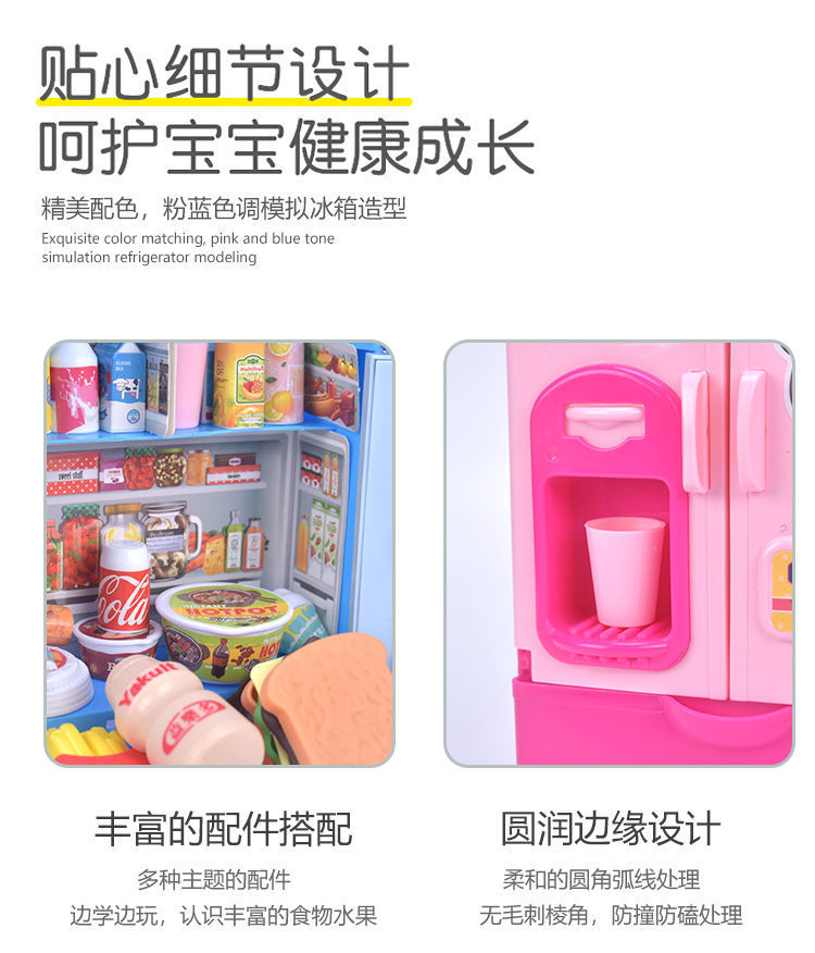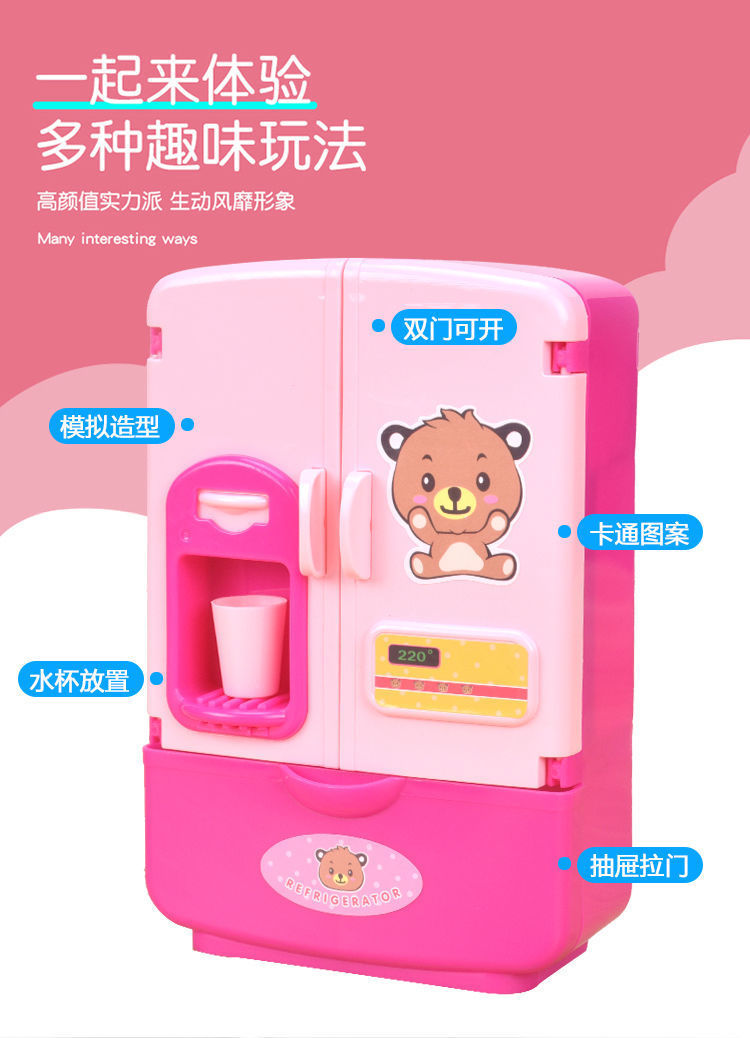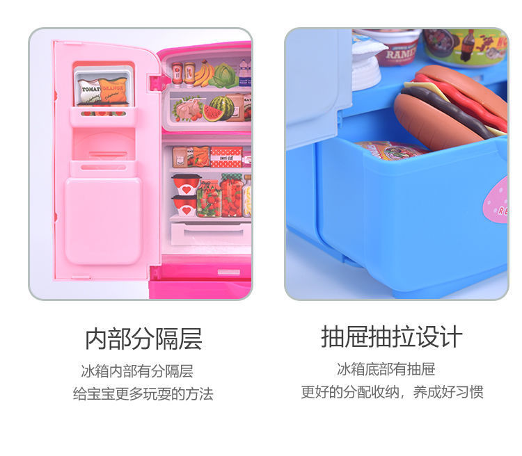 みんなの新商品のままごとは趣味の知能をまねて冷蔵庫のおもちゃの子供の台所の小さい家電のおもちゃを開けます。