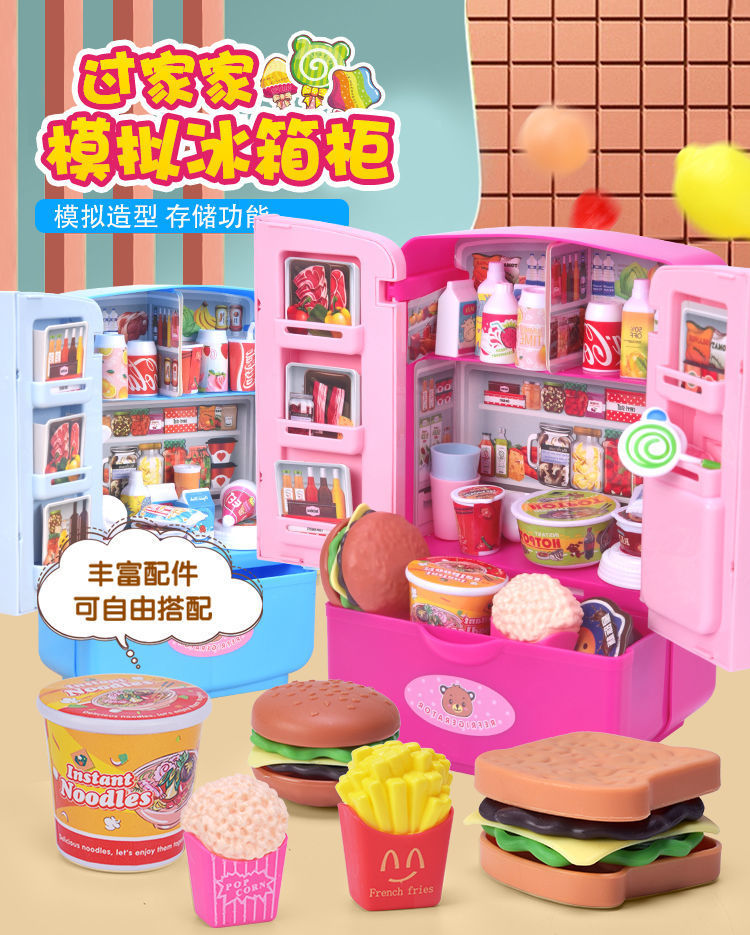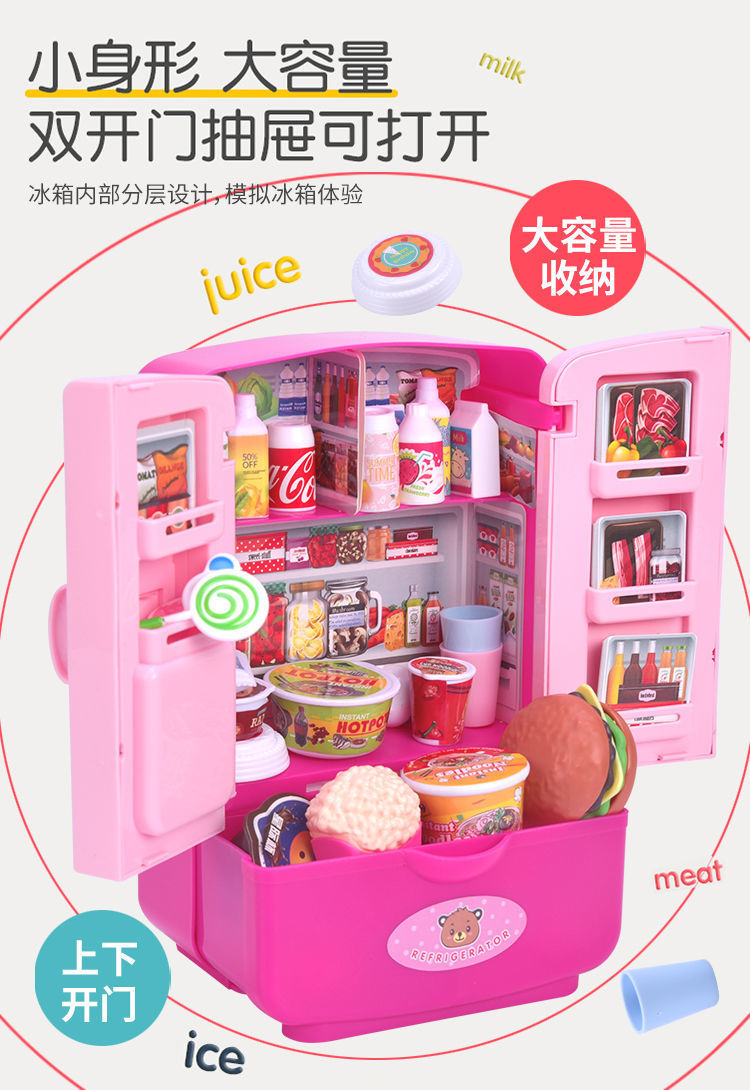 男の子楽しいスマート両開きドア冷蔵庫子供女の子おもちゃ女の子ミニシミュレーションスーパーマーケット棚外国貿易
