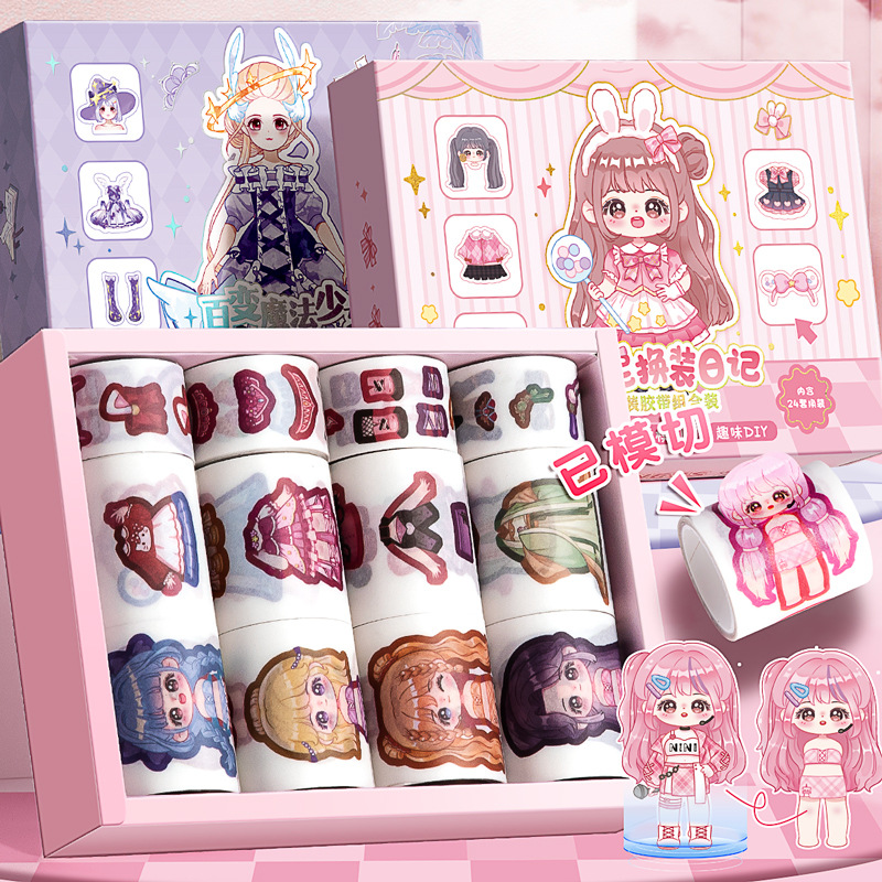 Nini ドレスアップロールステッカー カットなし 漫画ドレスアップフルセット フルロールパッケージステッカー ハンドブック かわいい女性和紙