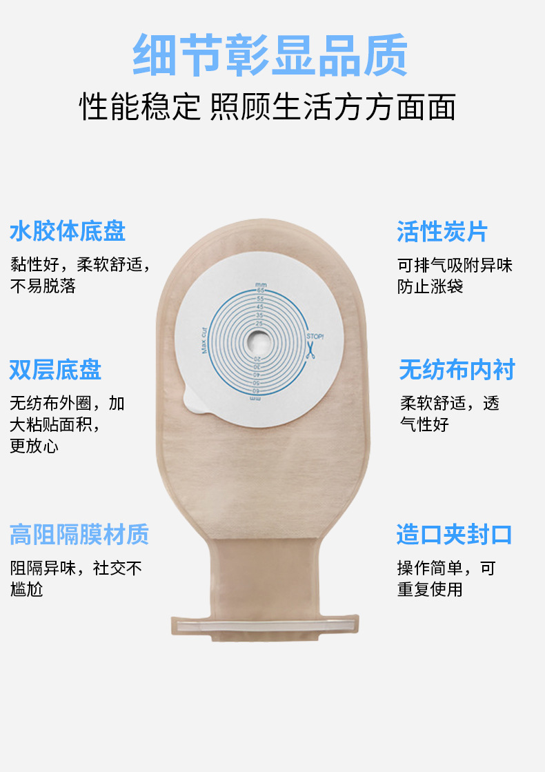 护士同学一件式造口袋直肠改道造痿袋无纺布双层胶底盘袋快速排气