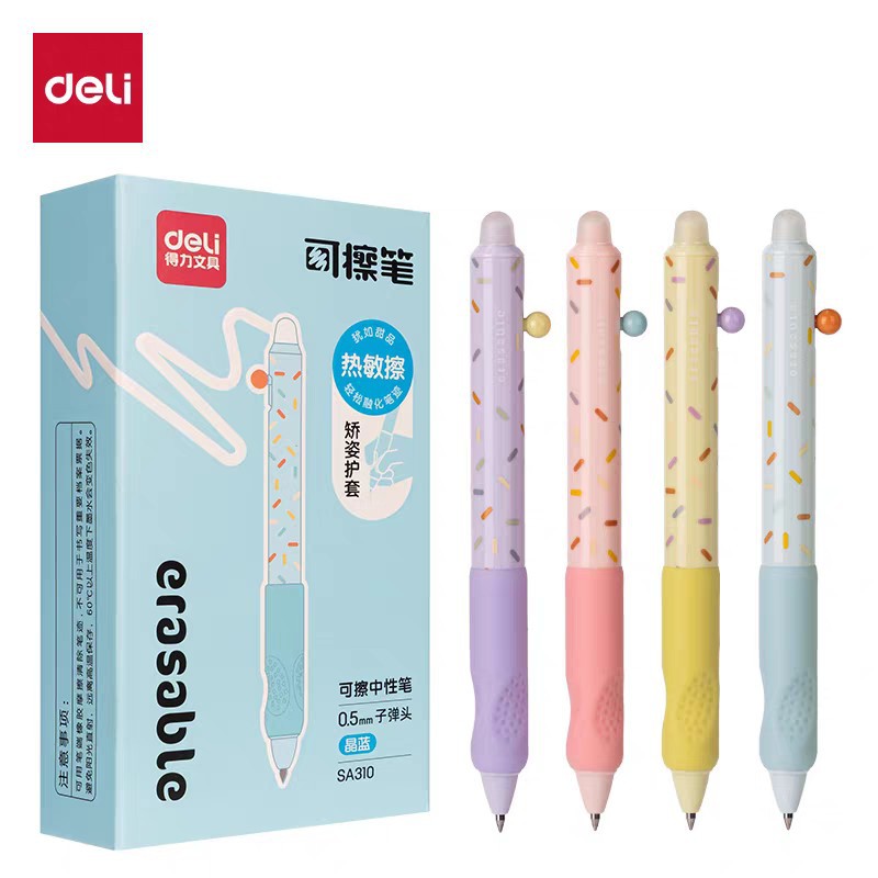 得力SA310可擦中性笔按动热敏擦高精度子弹头0.5mm可擦学习中性笔