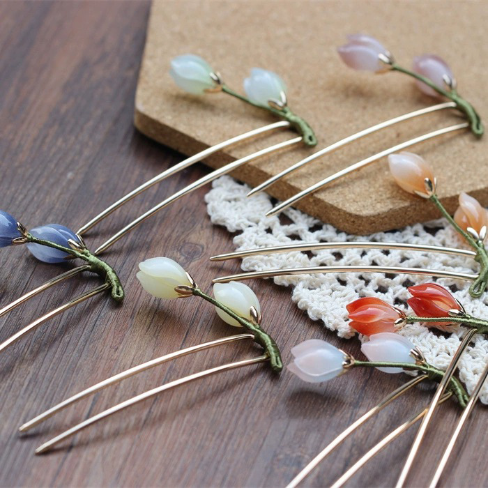 みかんの家の玉蘭のかんざしの古風u型の長いチューリップの花のかんざしの女性の日常のかんざし
