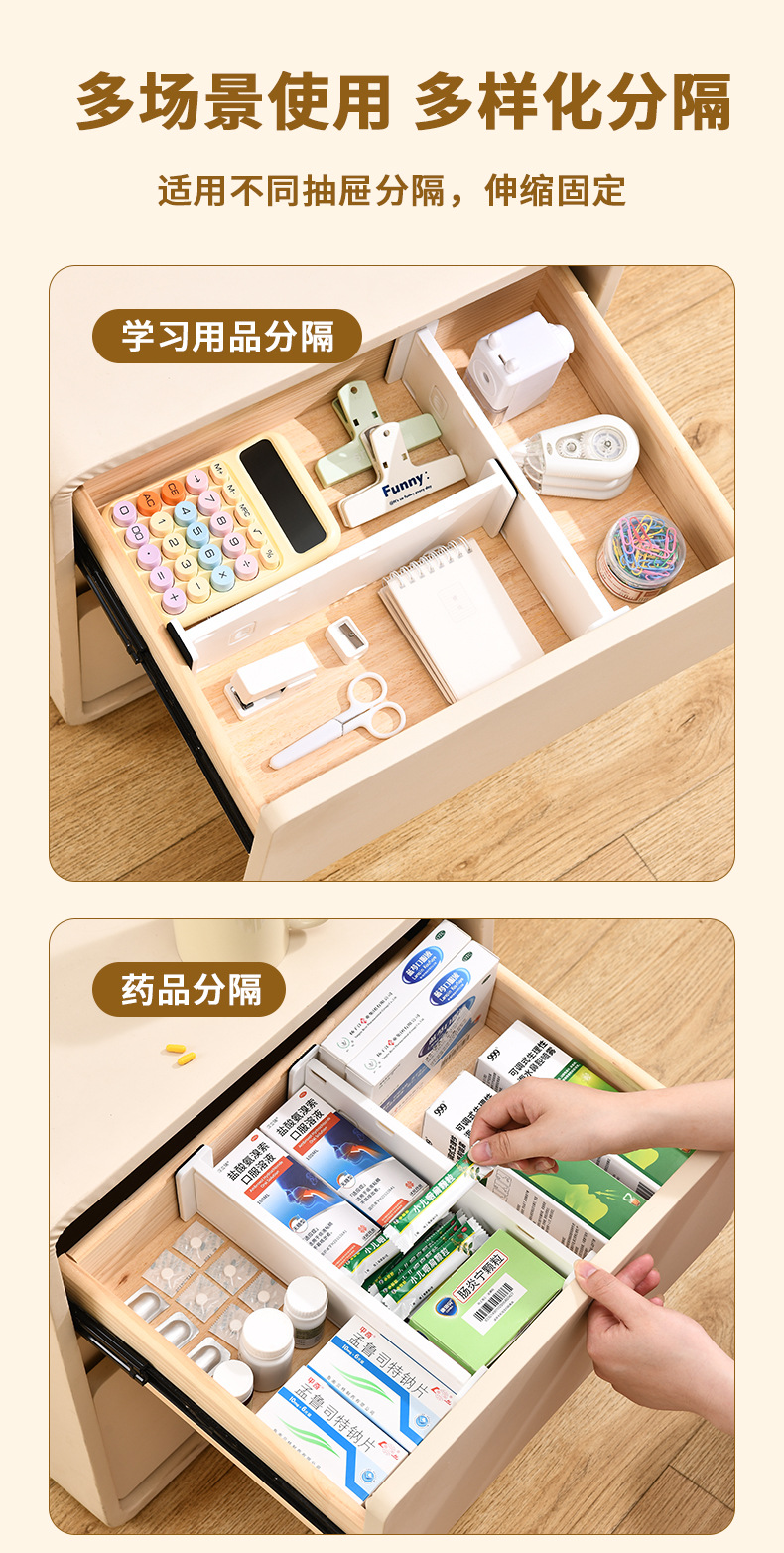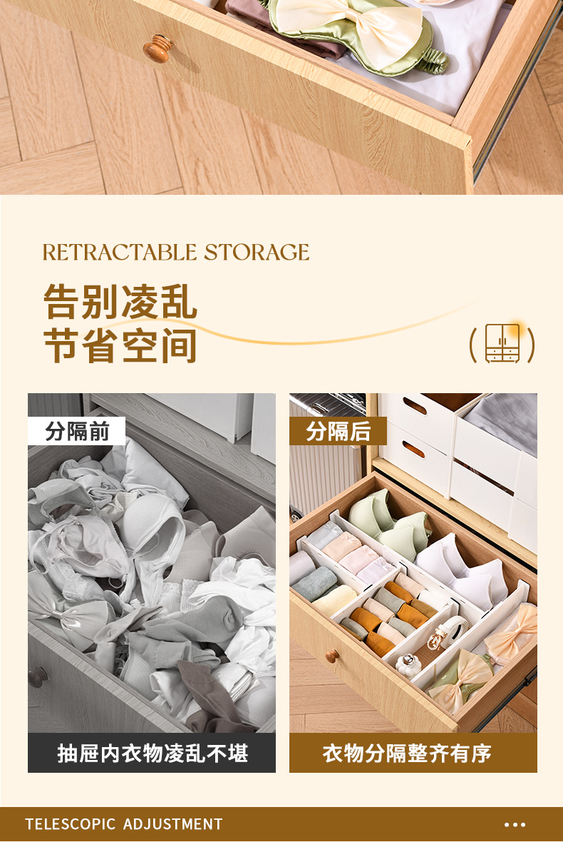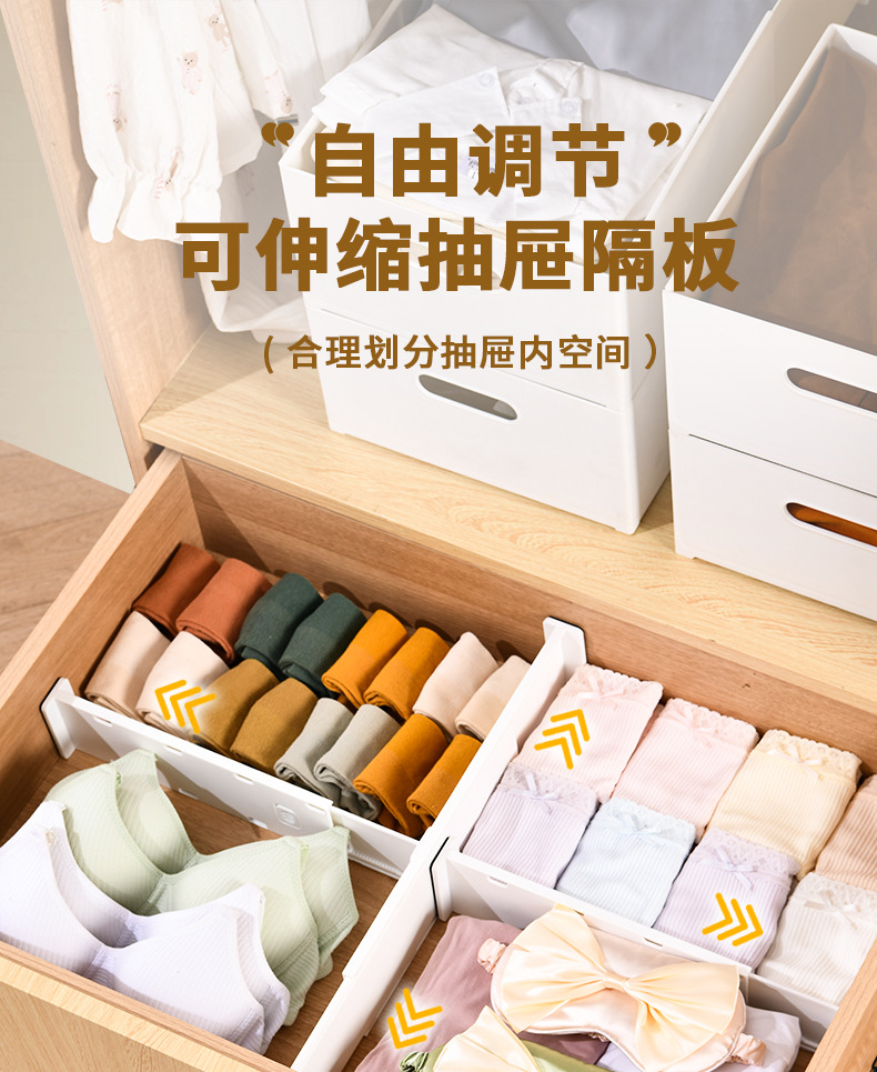 家用抽屉内整理分隔收纳板橱柜自由组合整理衣柜可伸缩多功能隔板