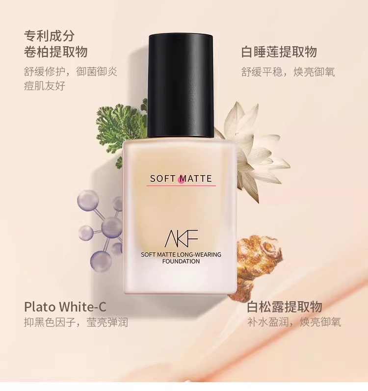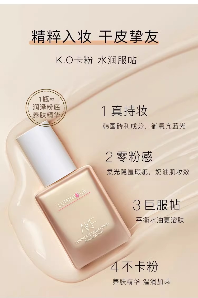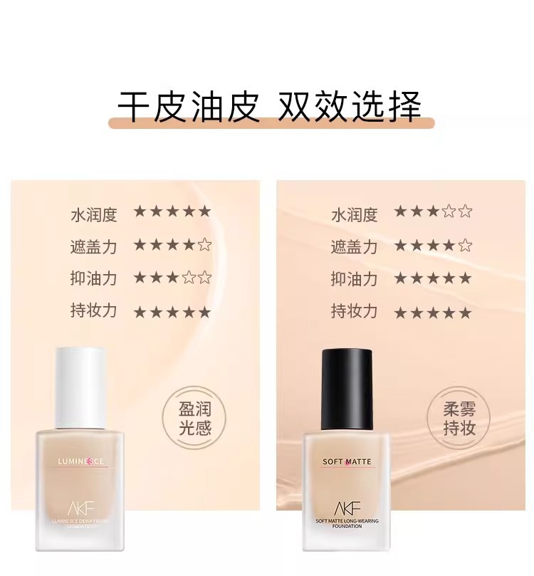 AKF粉底液持久不脱妆干皮油皮混油皮持久修饰肤色自然持妆