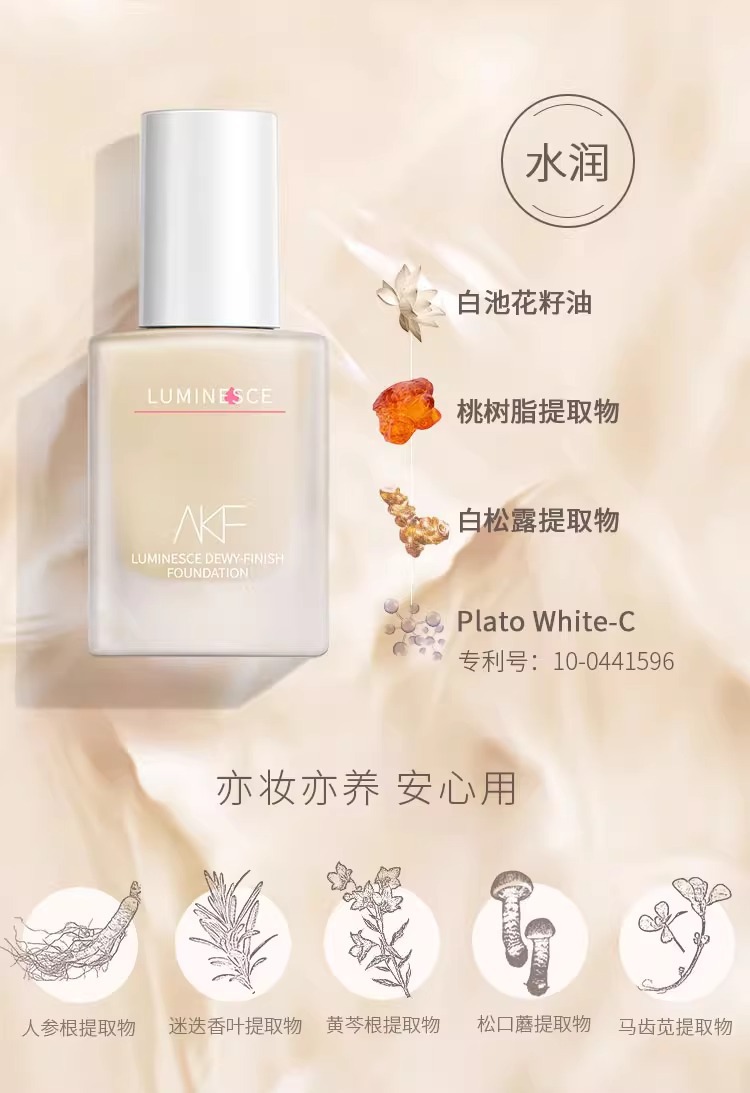 AKF粉底液盈润光感自然裸装打底遮瑕柔雾持妆久象牙白保湿粉底膏
