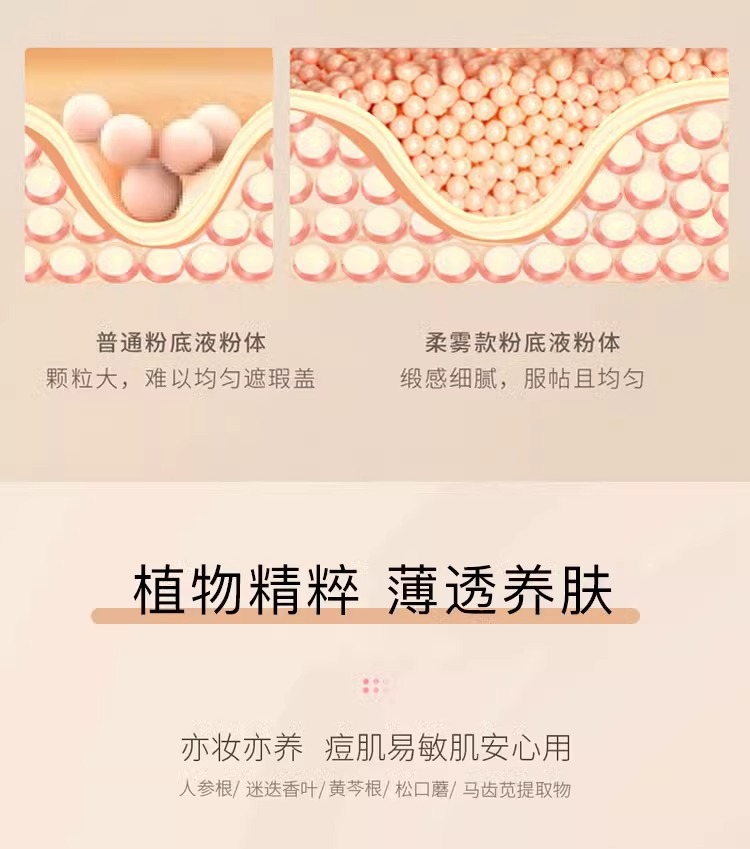 虫草日不落粉底液持久不脱妆干皮油皮遮瑕粉底液大牌粉底膏霜小样