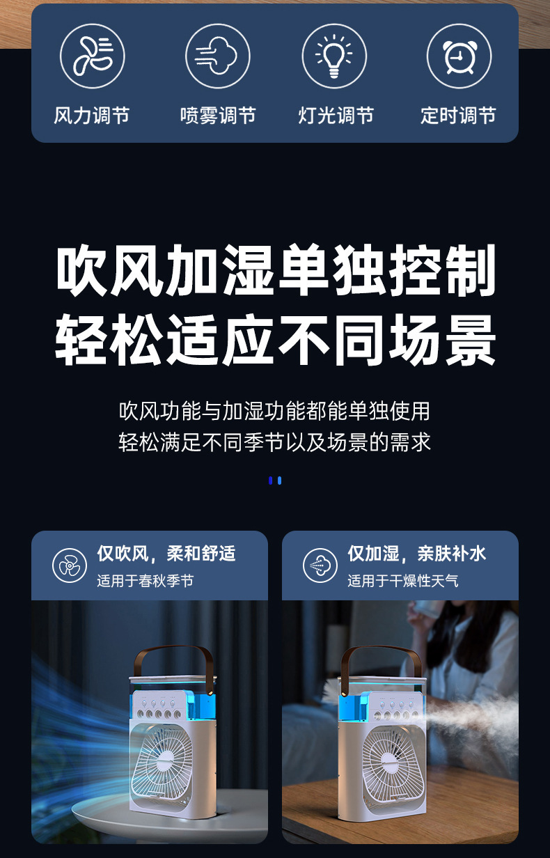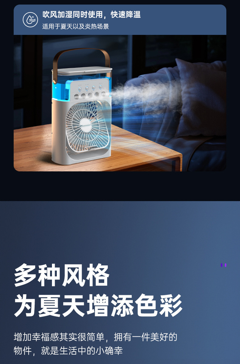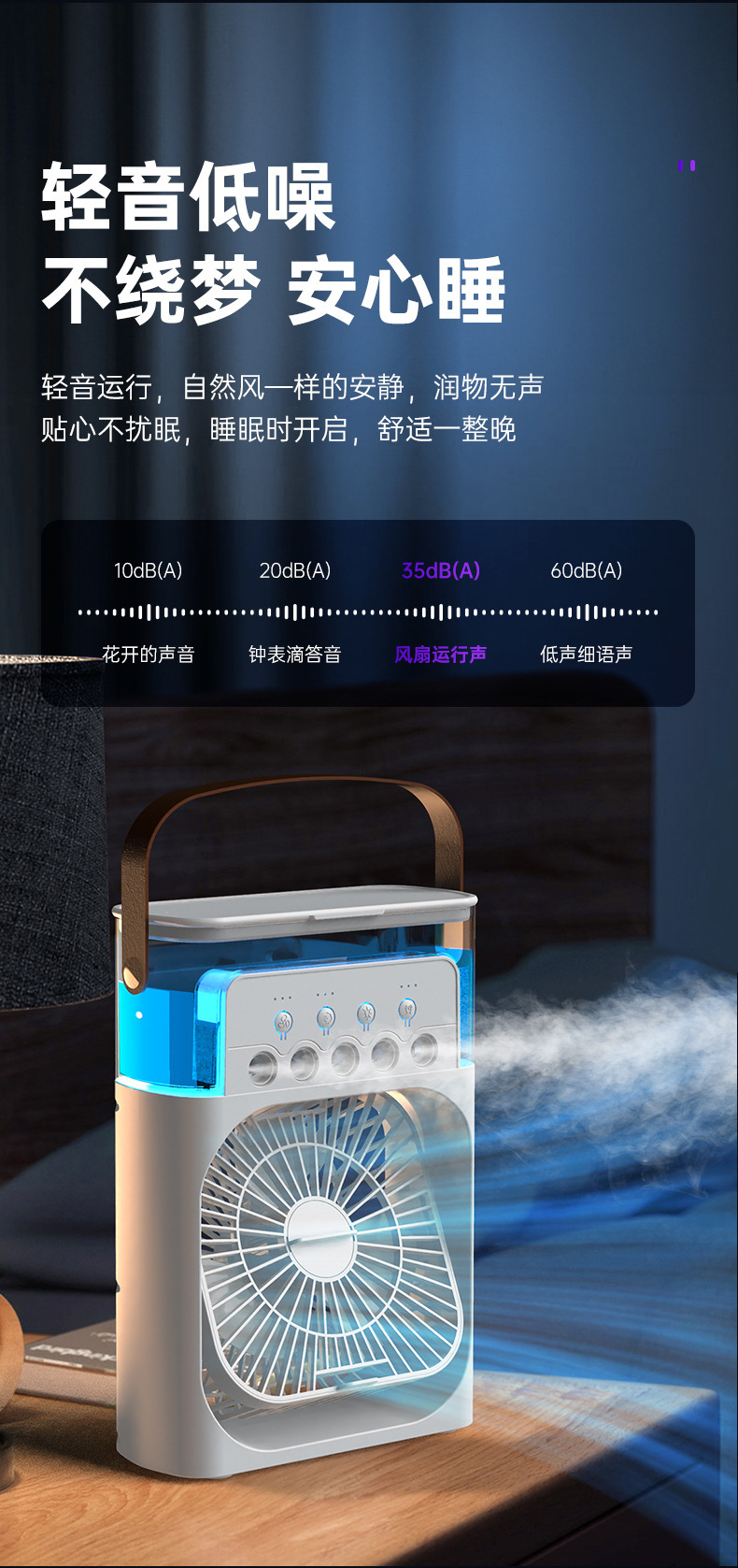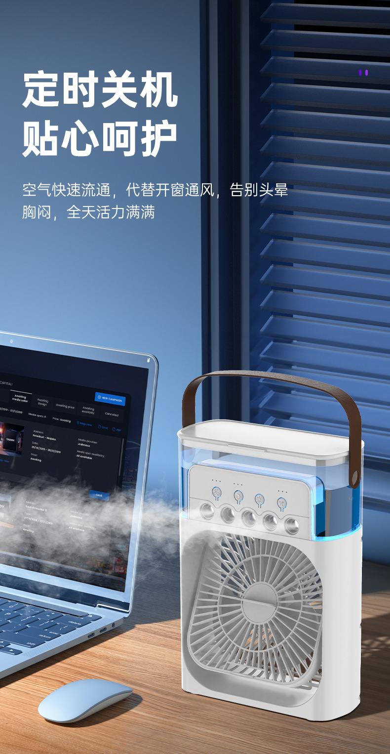 新款五孔喷雾制冷加湿风扇家用学生宿舍桌面风扇带夜灯定时小风扇