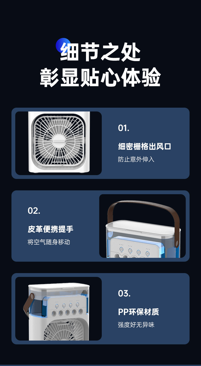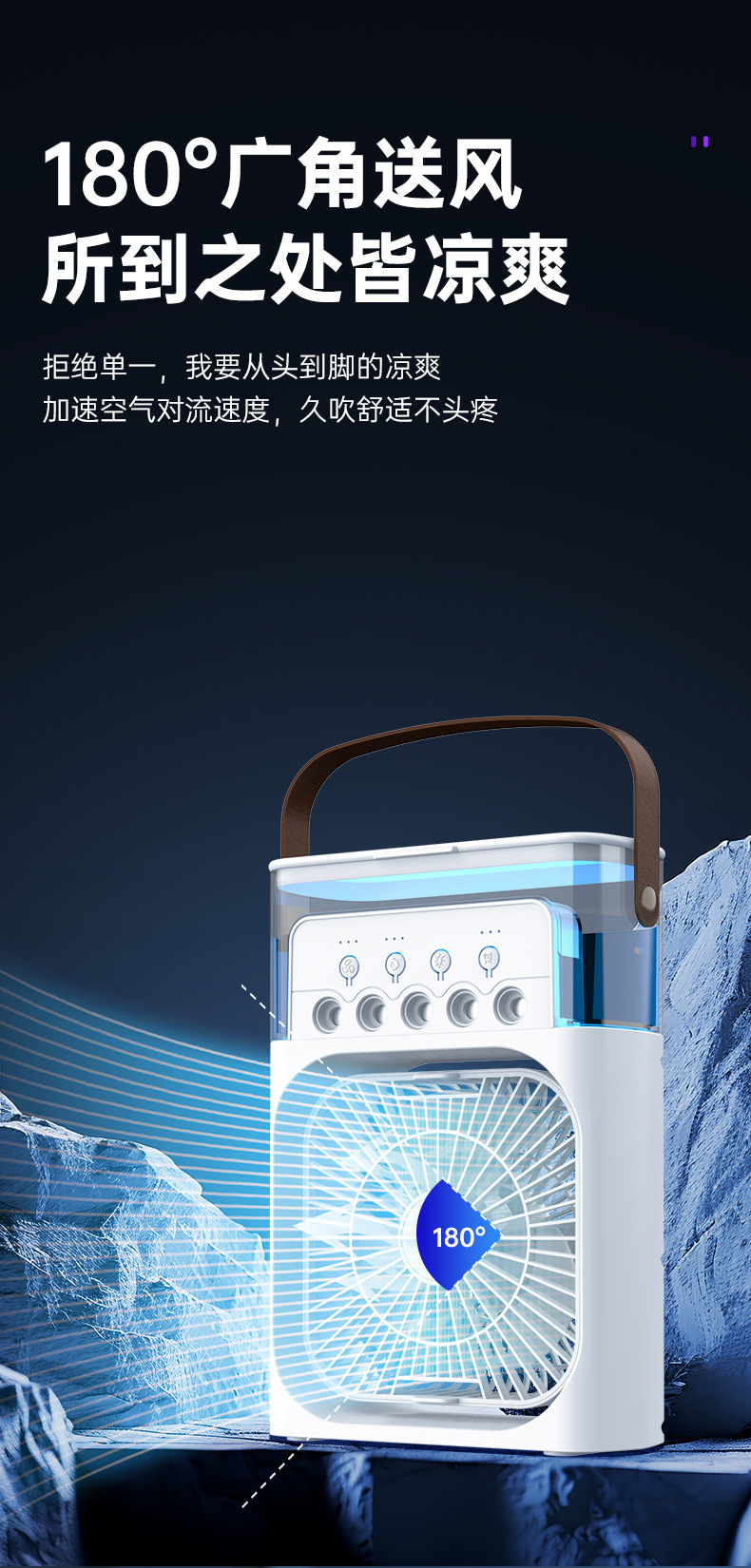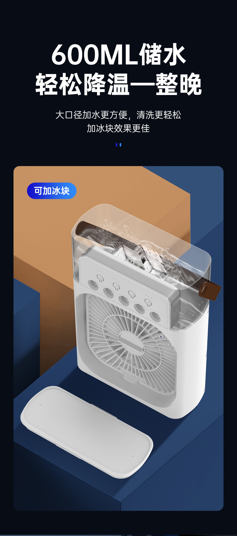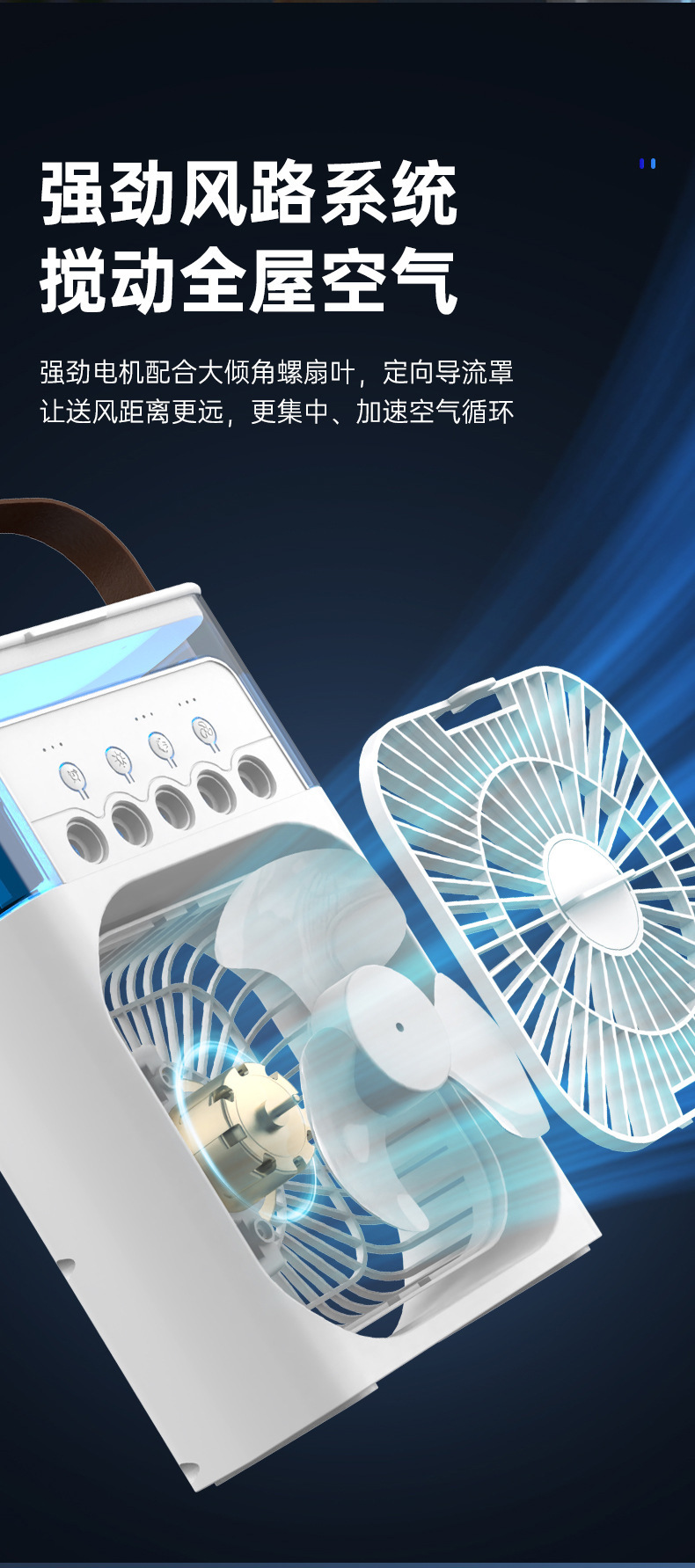 新款五孔喷雾制冷加湿风扇家用学生宿舍桌面风扇带夜灯定时小风扇