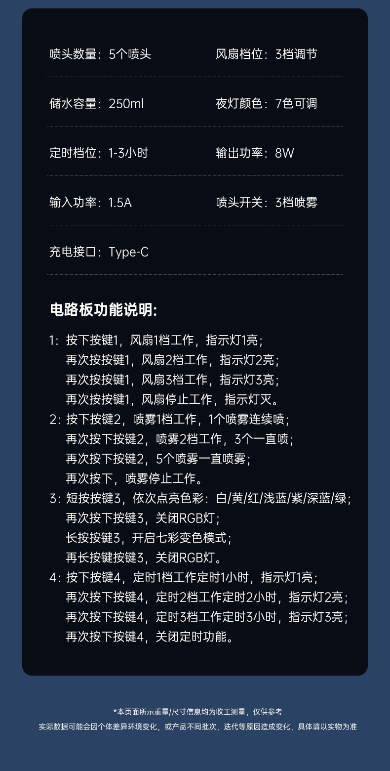 五孔加湿喷雾风扇插电式迷你家用桌面USB带灯台式小风扇