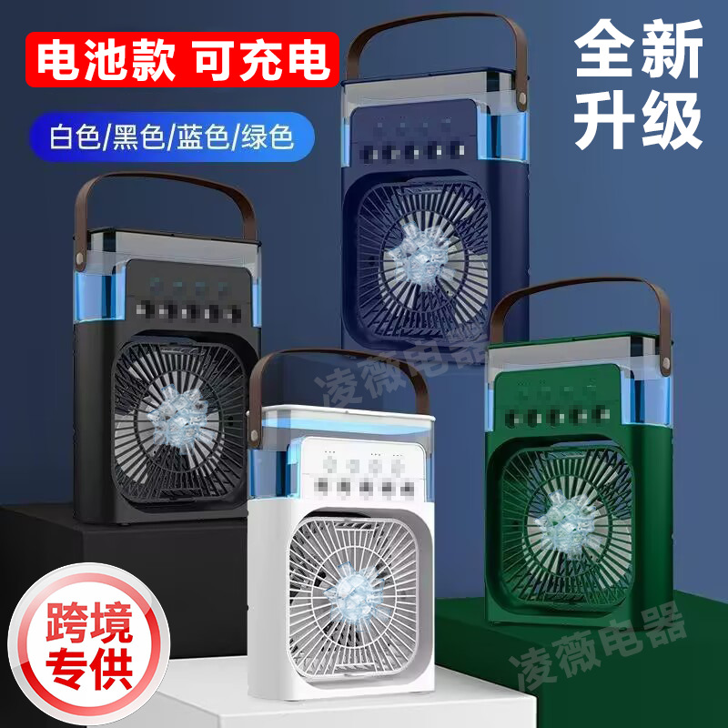 五孔加湿喷雾风扇充电款迷你家用桌面电池带灯台式小风扇外贸爆款
