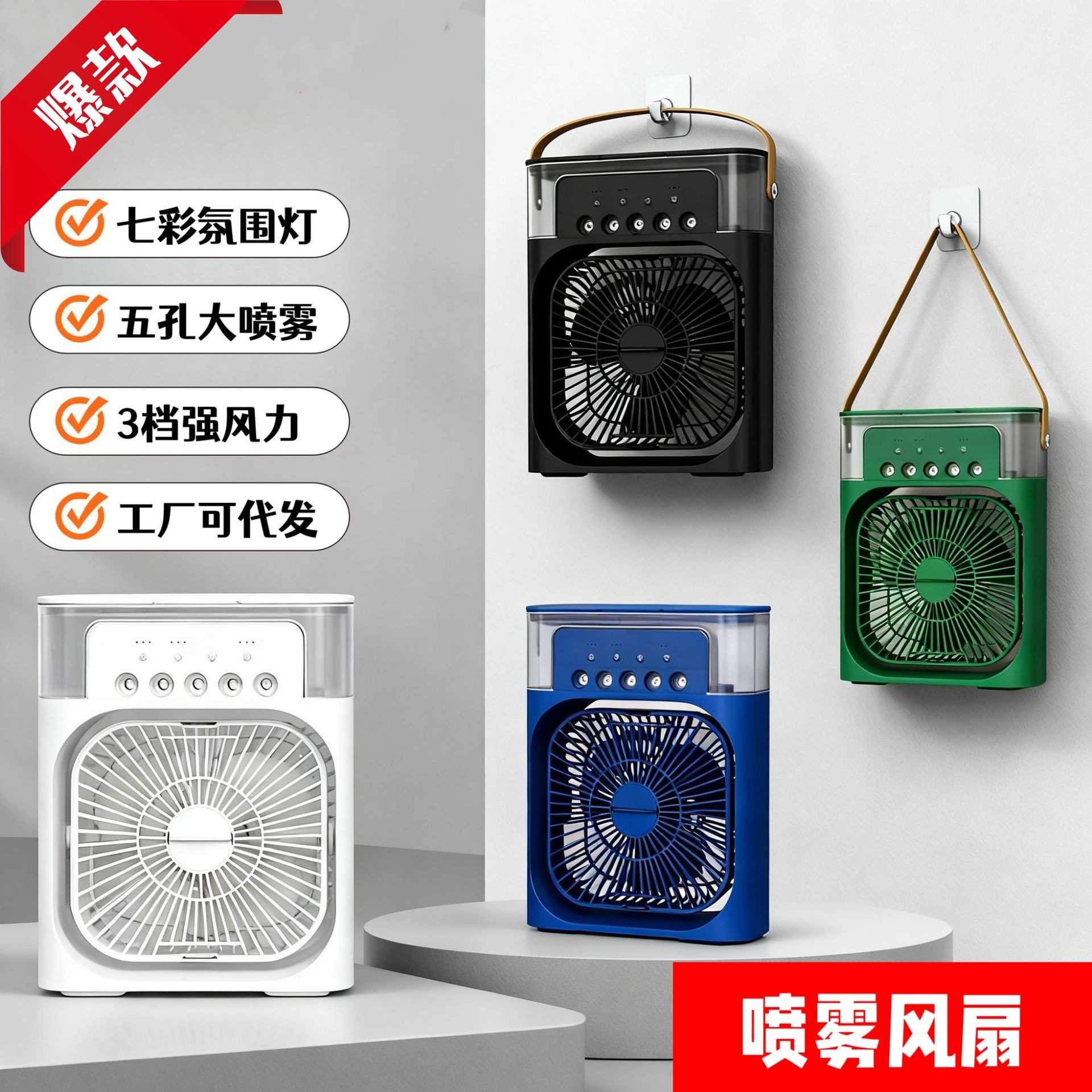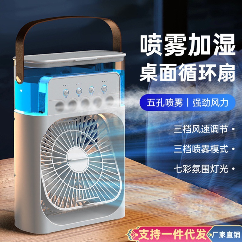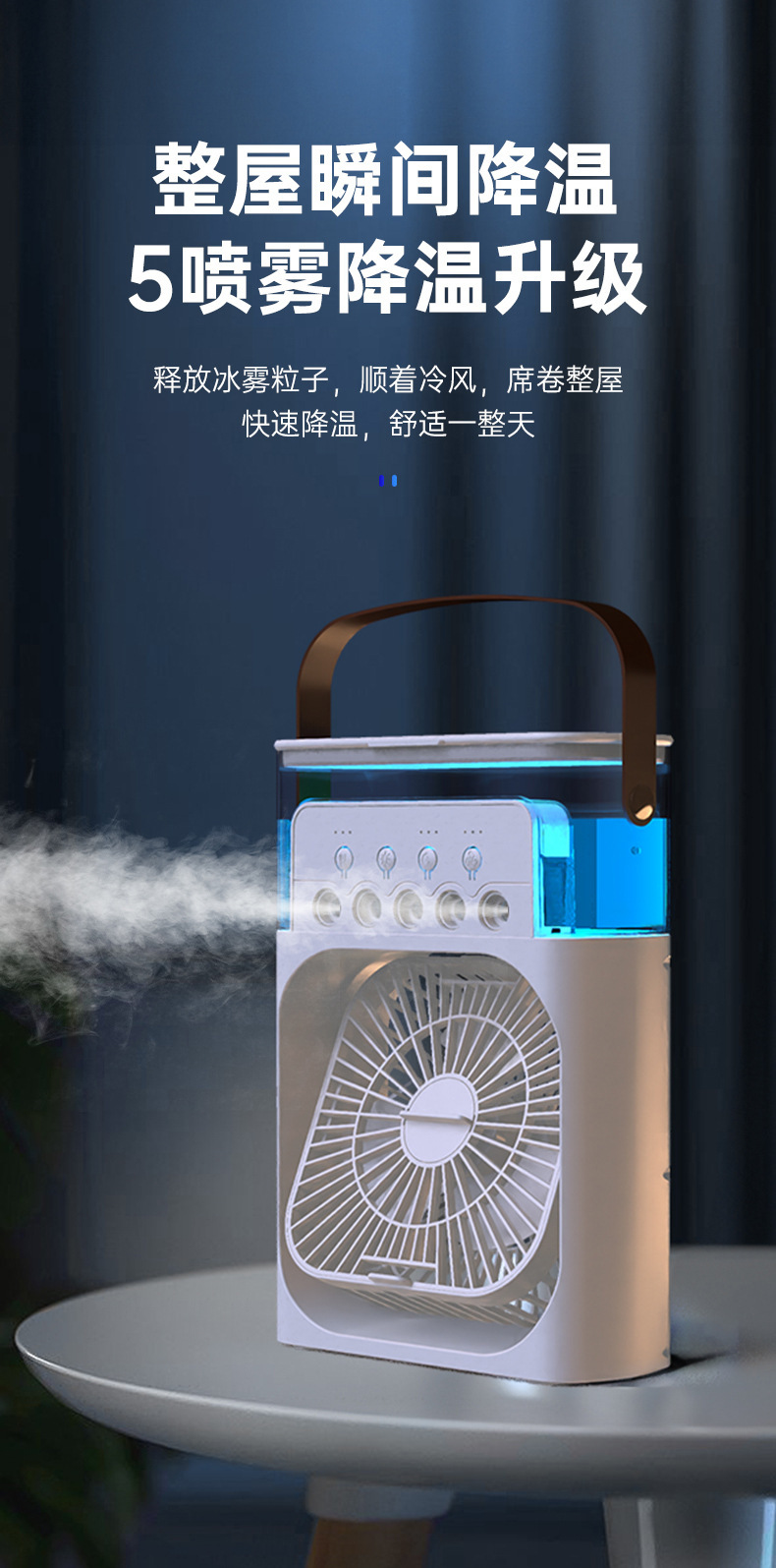 跨境五孔喷雾风扇家用办公室桌面学生宿舍雾化加湿器冷风机批发