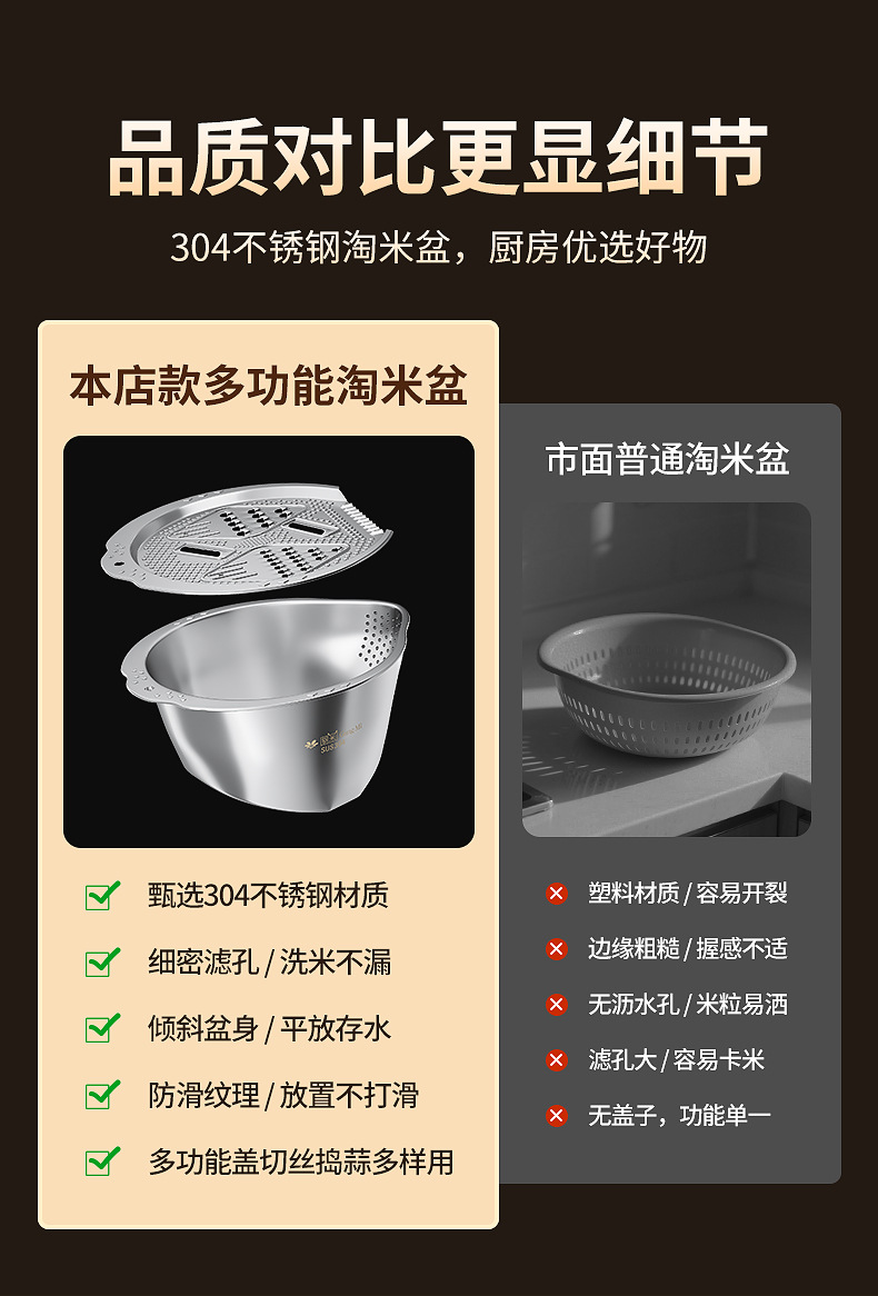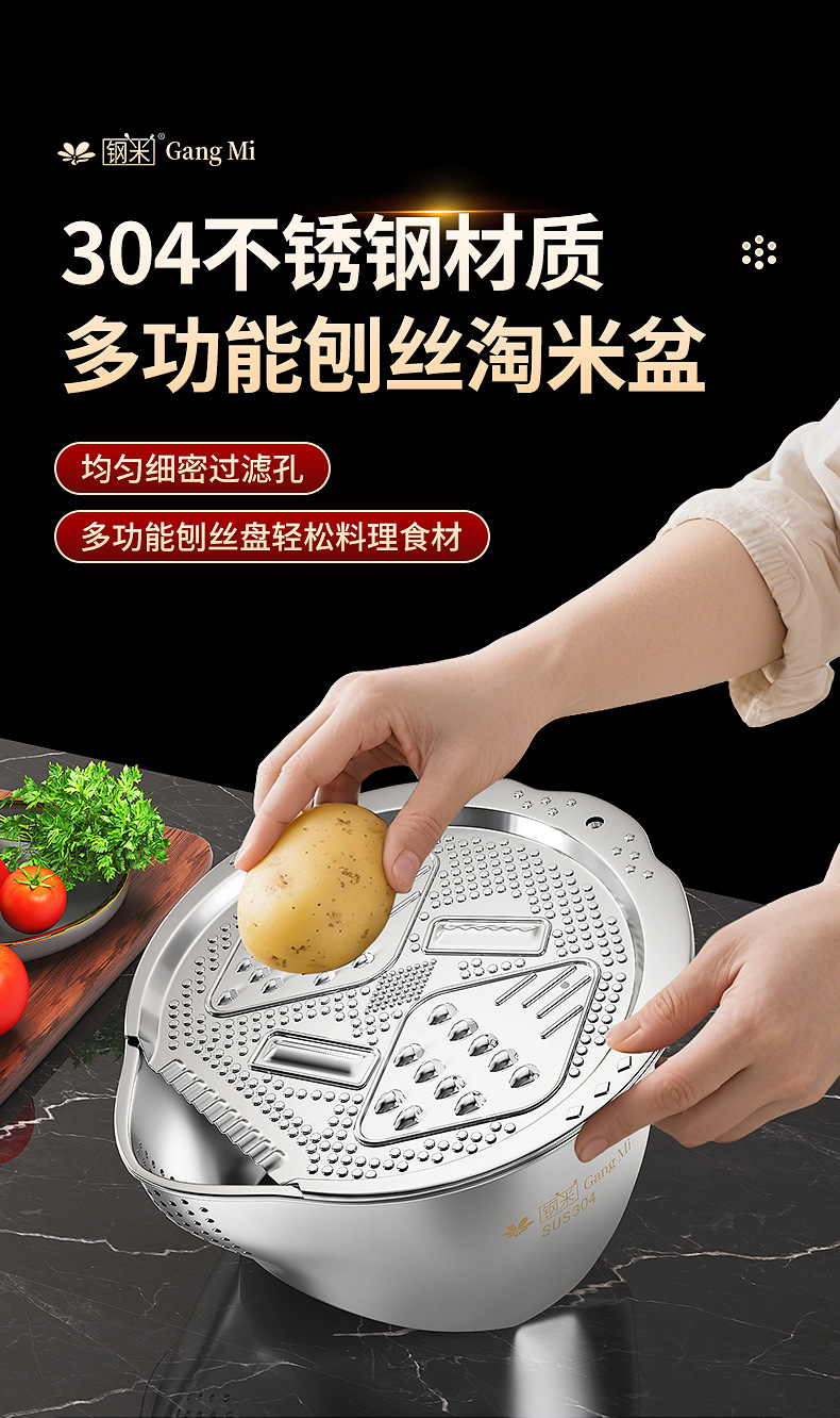 米洗いボウル 304 ステンレス鋼 316 食品グレード野菜洗いボウルアーティファクト水切りボウル米洗いふるい果物と野菜の水切りバスケットキッチン