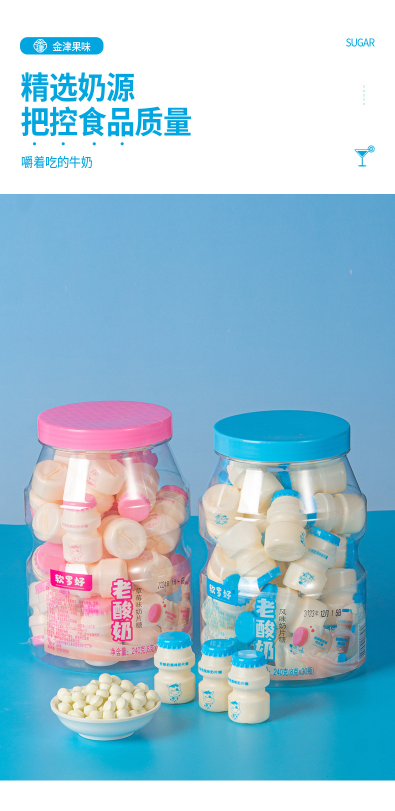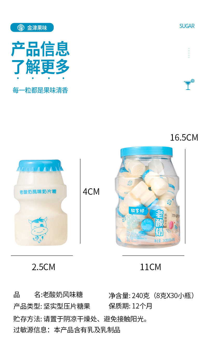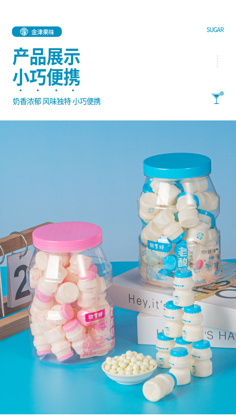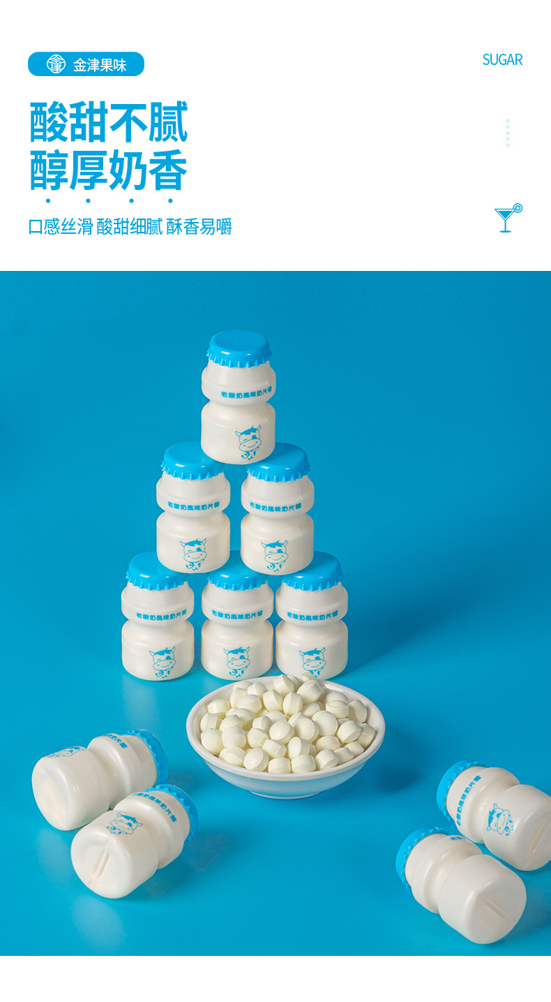 オールドヨーグルト風味のミルクタブレット、かわいいミニボトルのミルクキャンディー、個別包装、学校に必要なノスタルジックなおやつを持ち歩くのに最適
